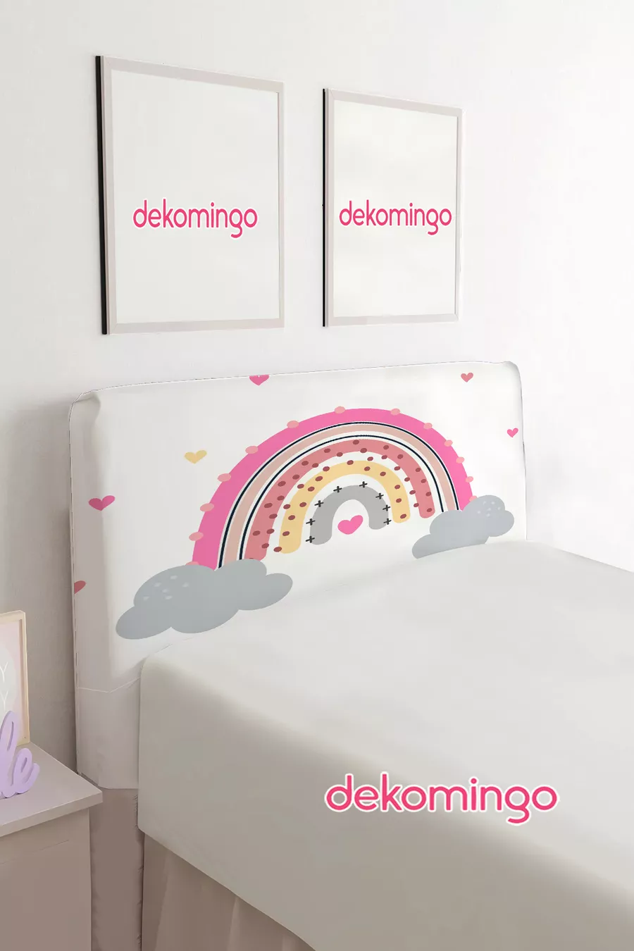 HOUSSE DE TÊTE DE LIT AVEC BASE À MOTIF NUAGE ARC-EN-CIEL ROSE (SIMPLE)