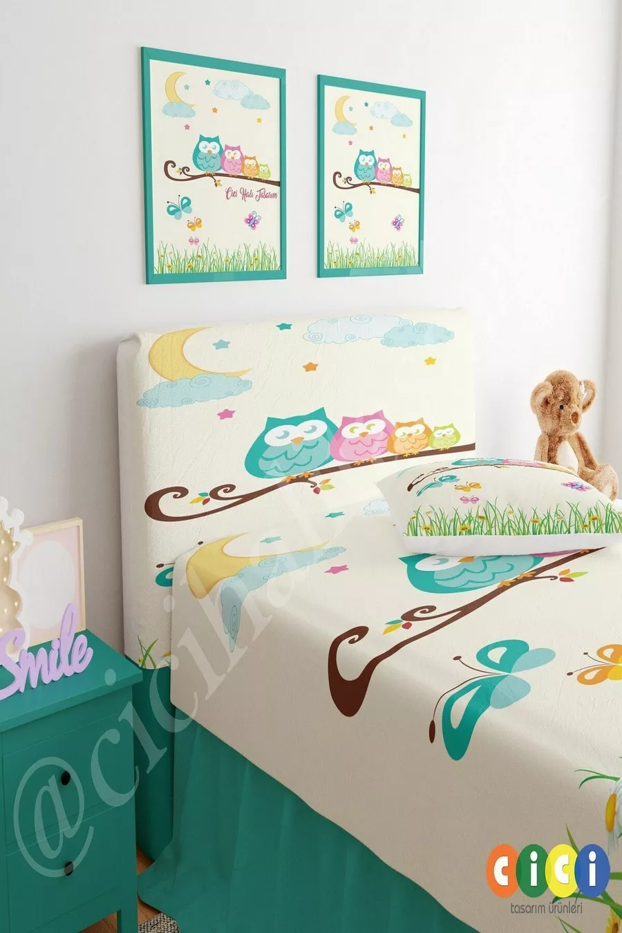 Housse de tête de lit Famille de hiboux Papillon