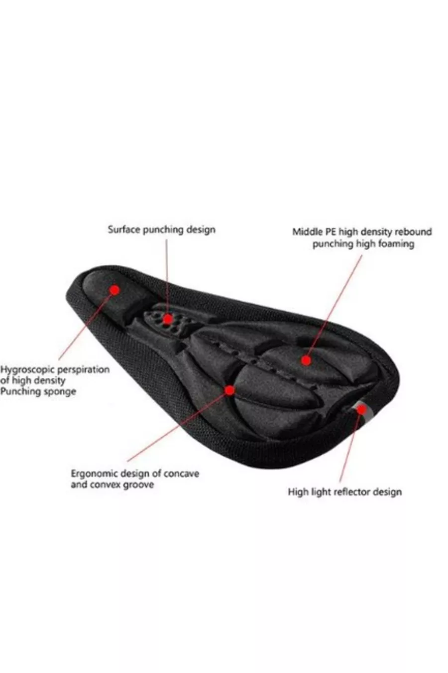 Housse de Selle de Vélo en Éponge Noire Housse de Siège Orthopédique Réflecteur 3D