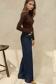 S'évasant de la taille jusqu'à la cheville Ne pas utiliser d'eau de Javel, laver en machine à 40°C, repasser à l'envers, ne pas nettoyer à sec, laver à l'envers