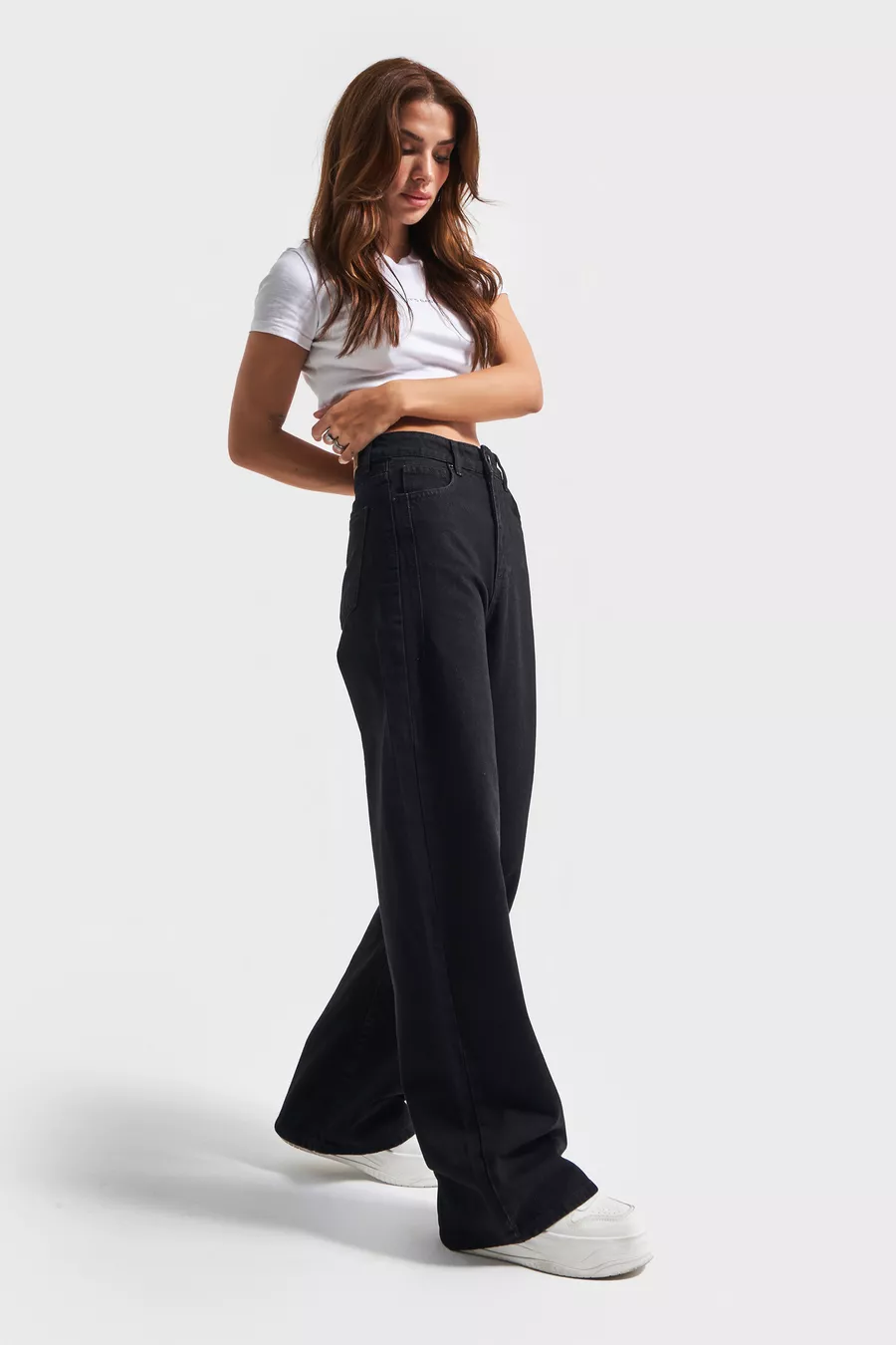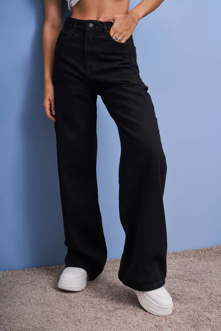 Jean denim femme noir Black Od couleur Olea, coupe large, confort, taille haute