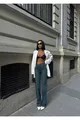 Jean large taille haute femme vert tint, pantalon en jean extensible Palazzo