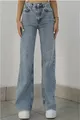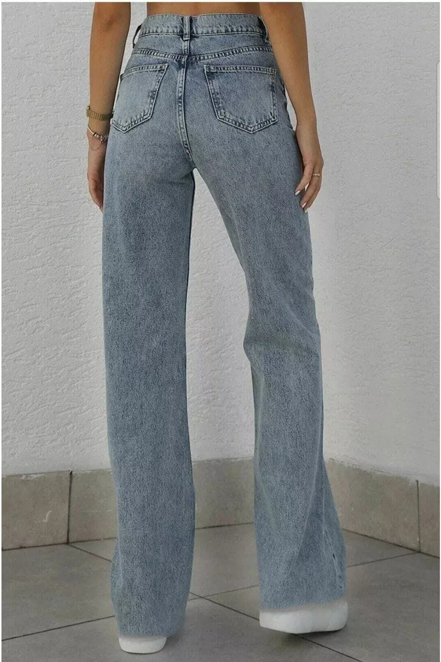 Jean large taille haute extensible bleue décontracté à jambes larges Rebecca