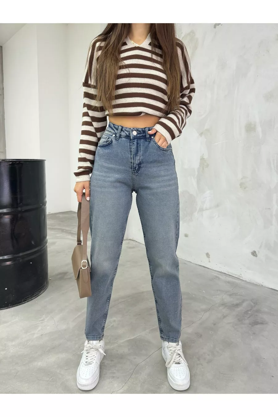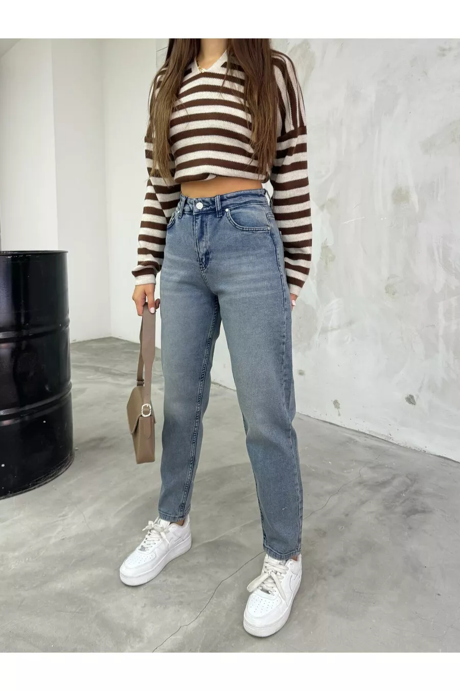 Jean Mom Taille Haute Femme Extensible/Élasthanne