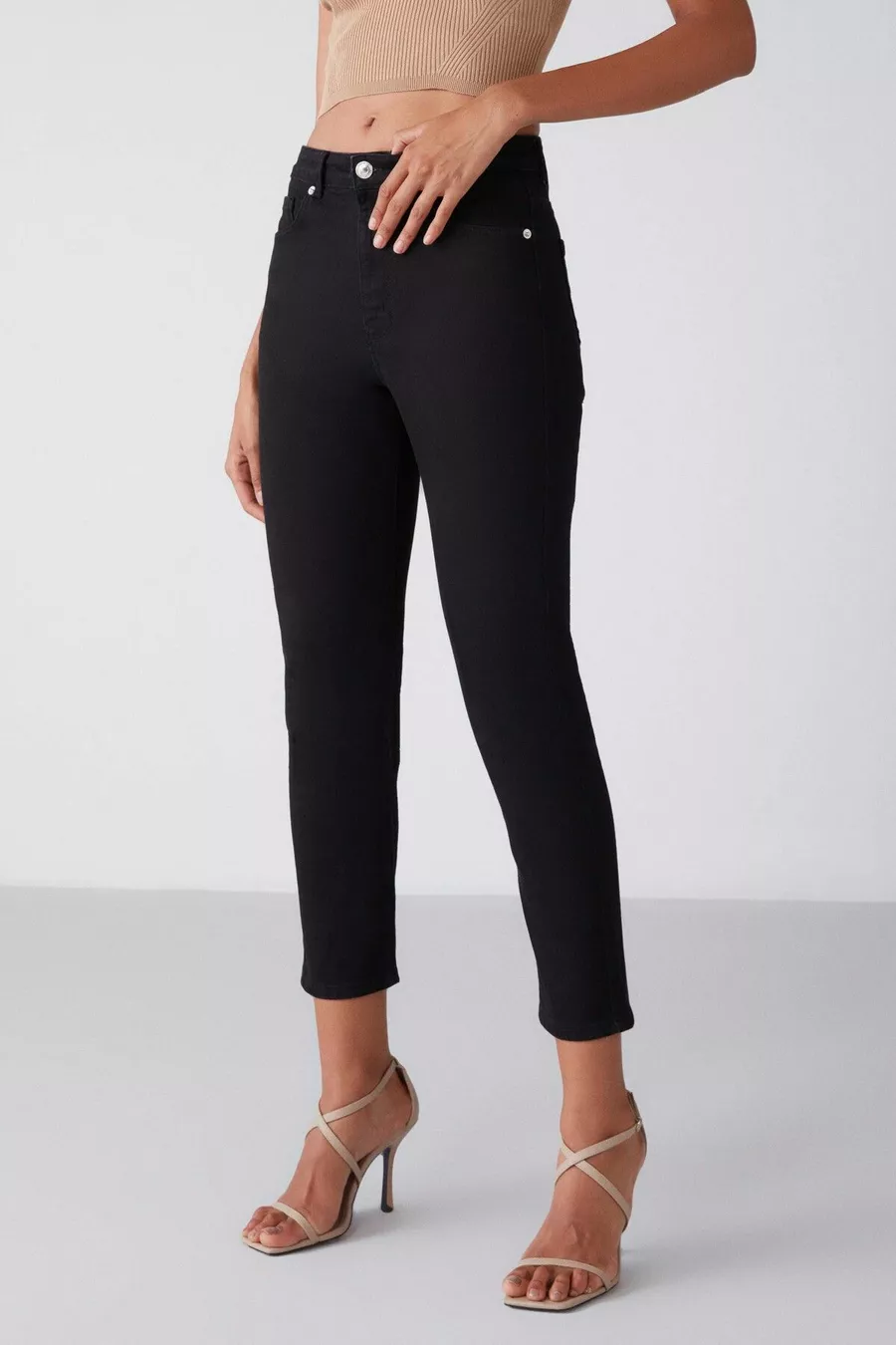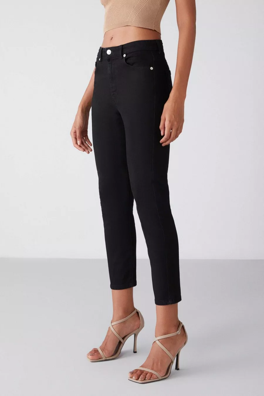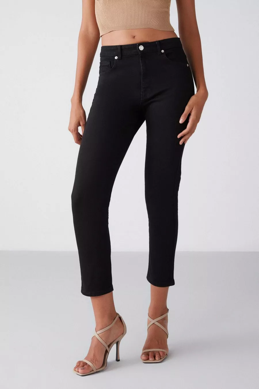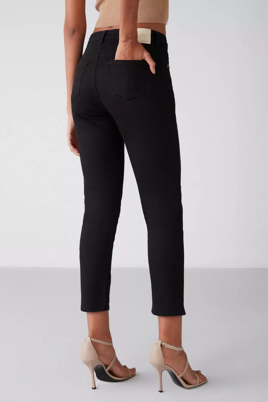 Jean noir Gına pour femme, coupe skinny, jambes étroites, taille normale, en coton biologique, tissu confortable, 5 poches
