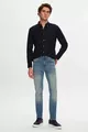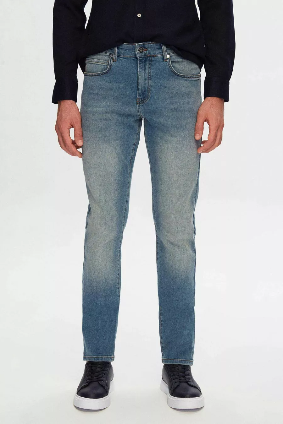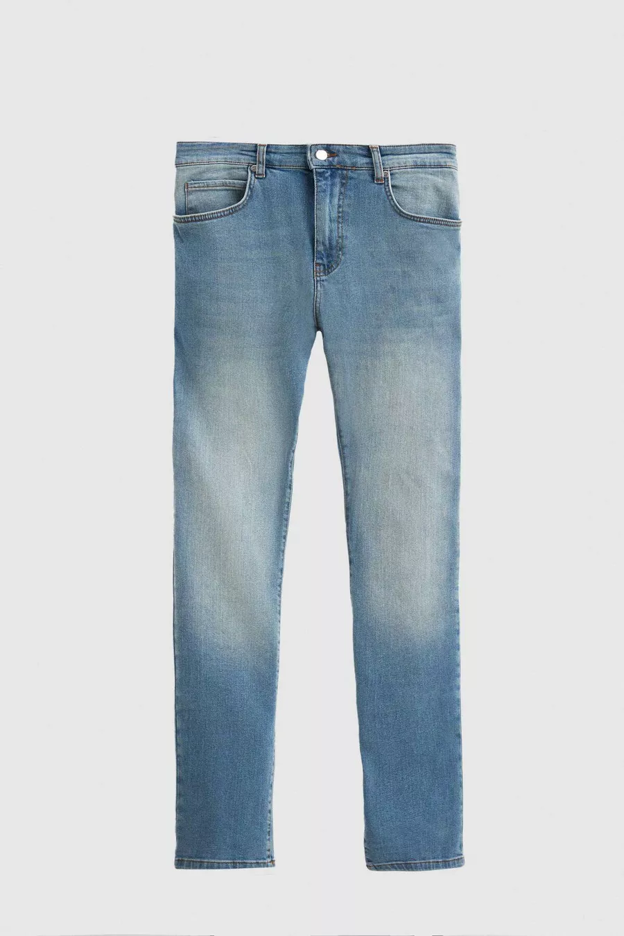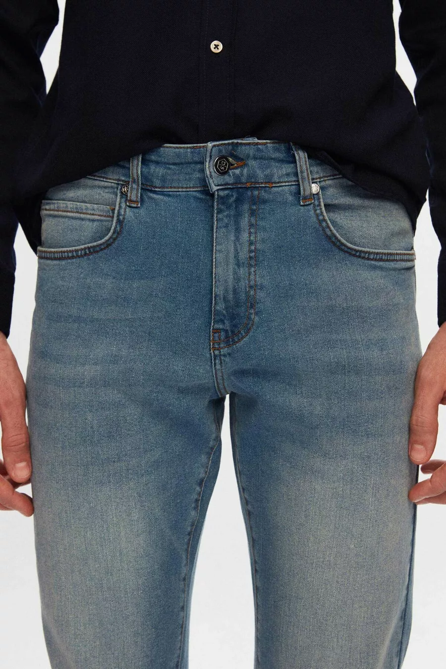 Jean slim fit bleu uni à cinq poches en denim stretch lavé