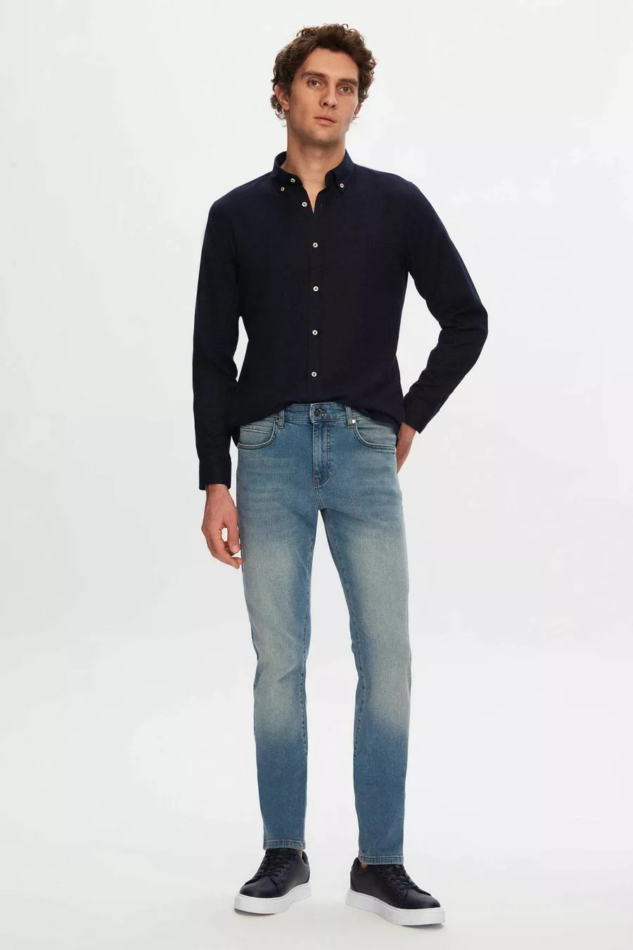 Type de bas: Bas étroit État de la ceinture: Sans ceinture Taille: Taille normale Couleur: Bleu Matériau: Textile Poches: 5 poches Type de produit: Uni Collection: Denim Longueur: Standard Type de tissu: Tissé Silhouette: Slim Occasion: Casual/Quotidien Coupe: Slim Fit Motif: Uni Caractéristique supplémentaire: Lavé Fermeture: Boutonnée Type de tissage: Denim Détail de durabilité: Non Composition du matériau: 98% Coton, 2% Élasthanne Instructions de lavage: Type 1 Saison: Été Origine: TR État de l'emballage: Pas de boîte