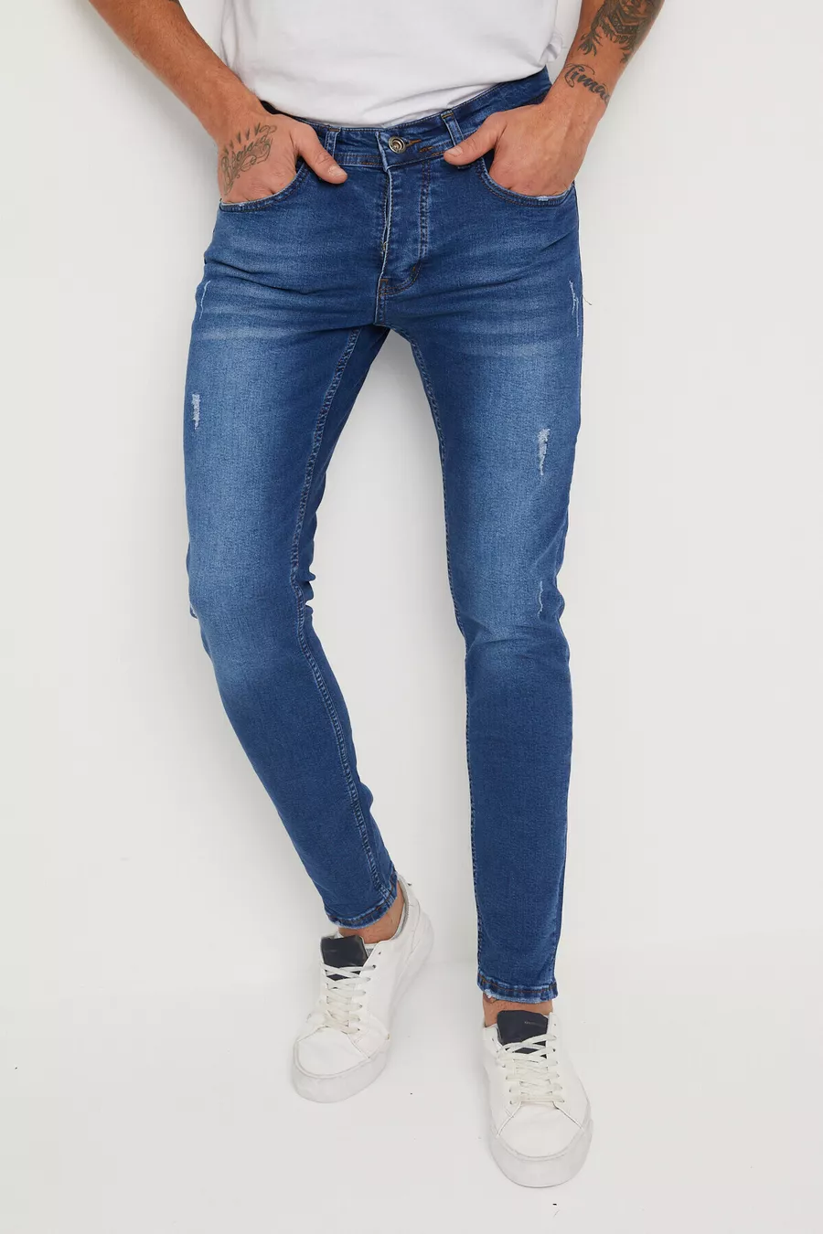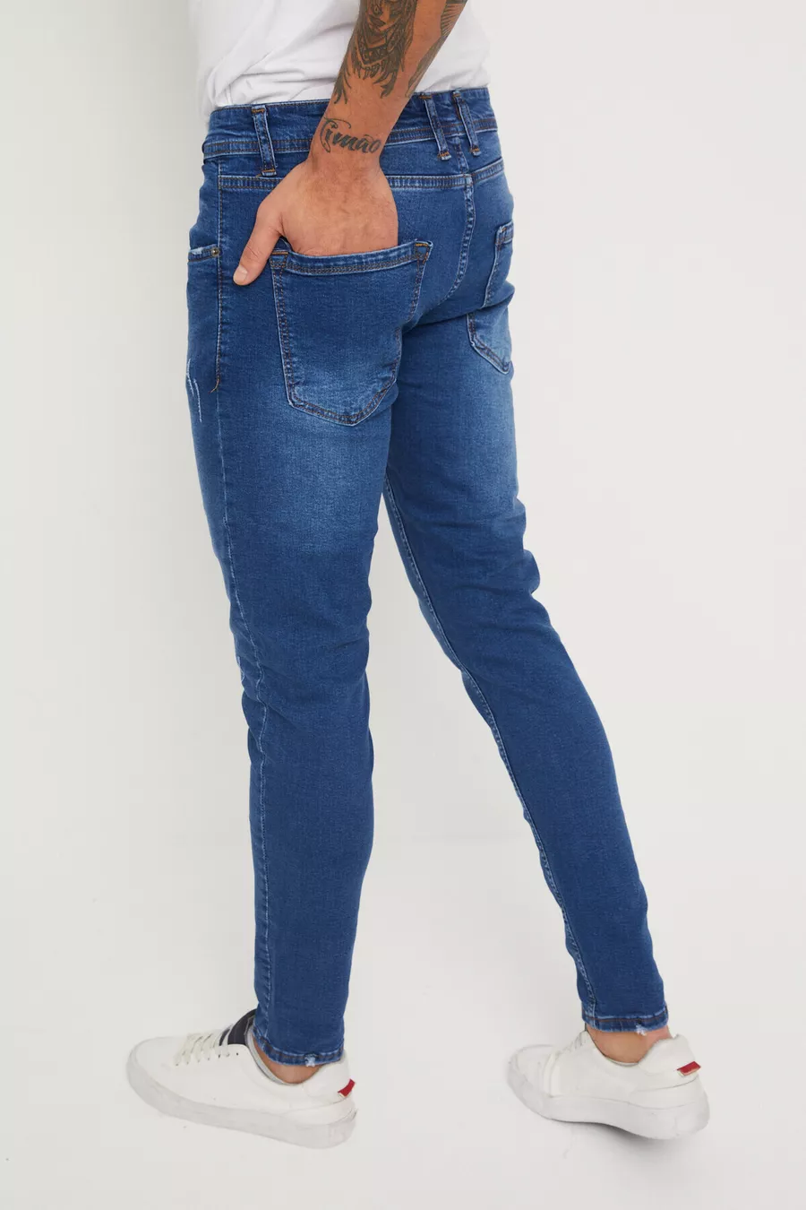 Jean Slim Homme Bleu avec Lycra et Détail à Onglets