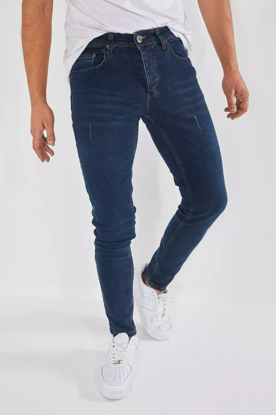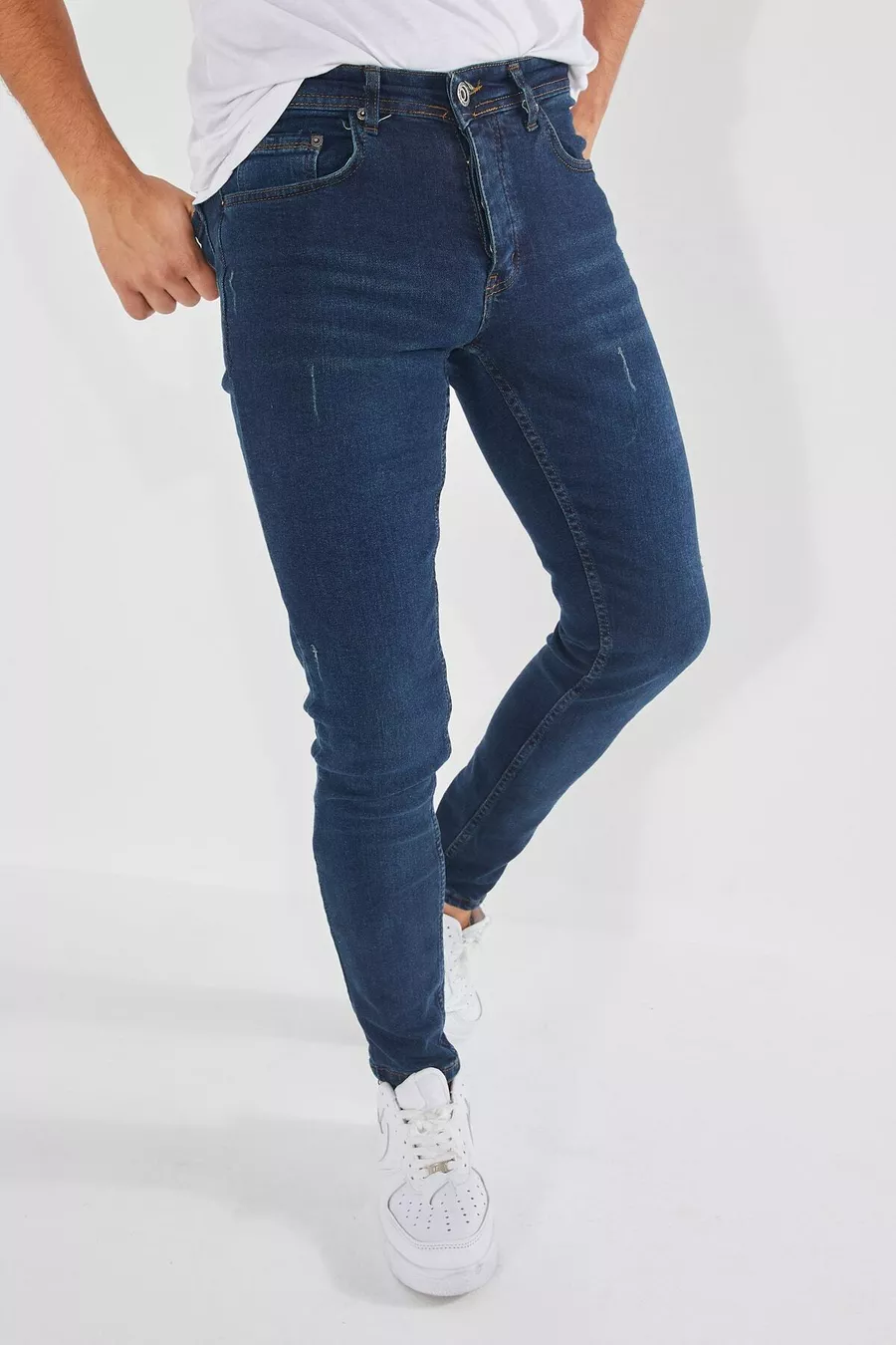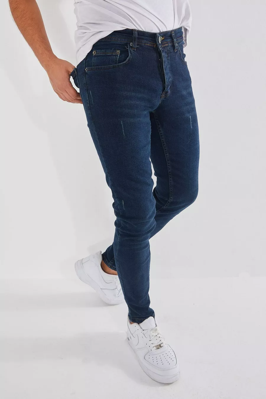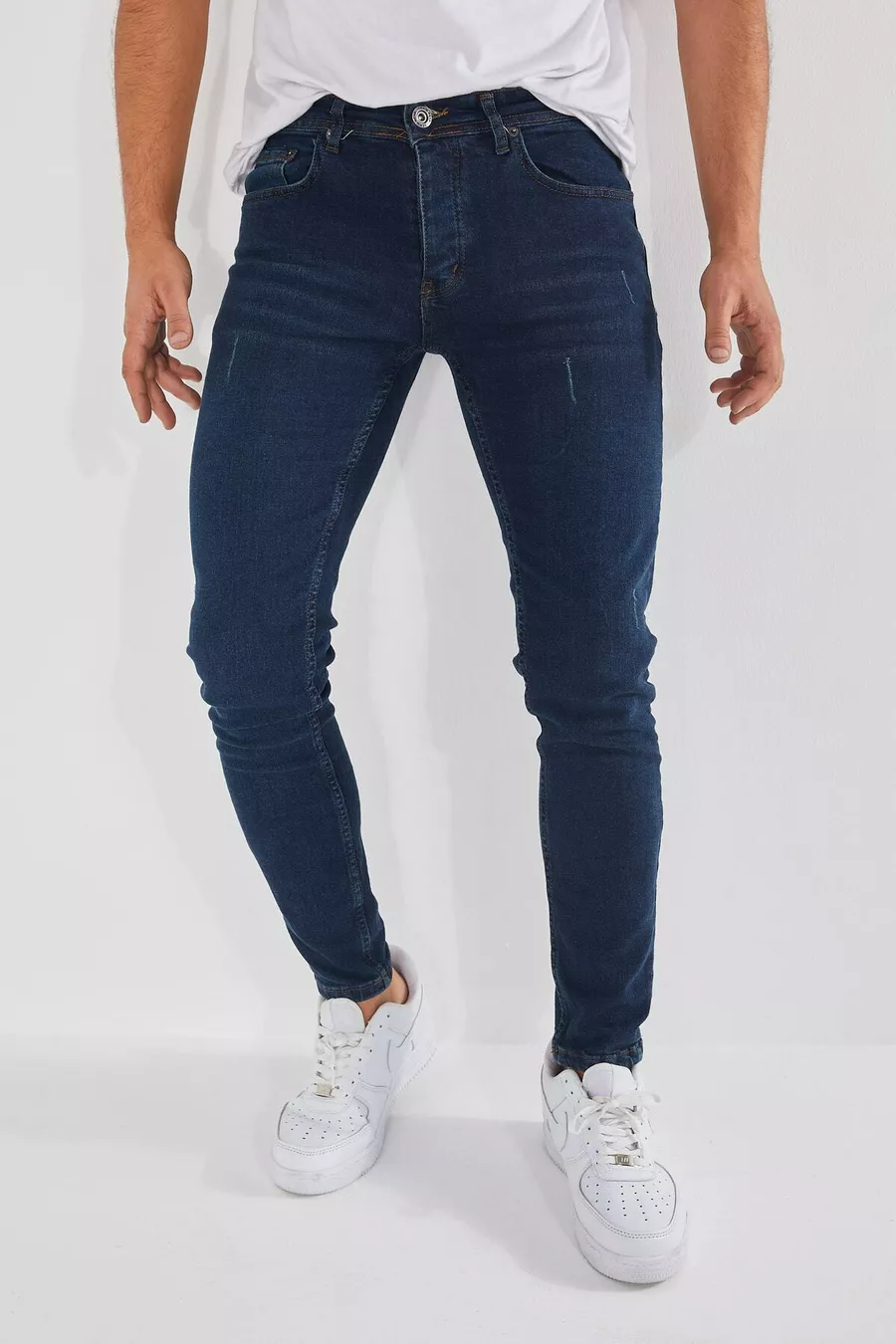 Jean slim vert pour homme, coupe étroite, en denim stretch avec détails surpiqués