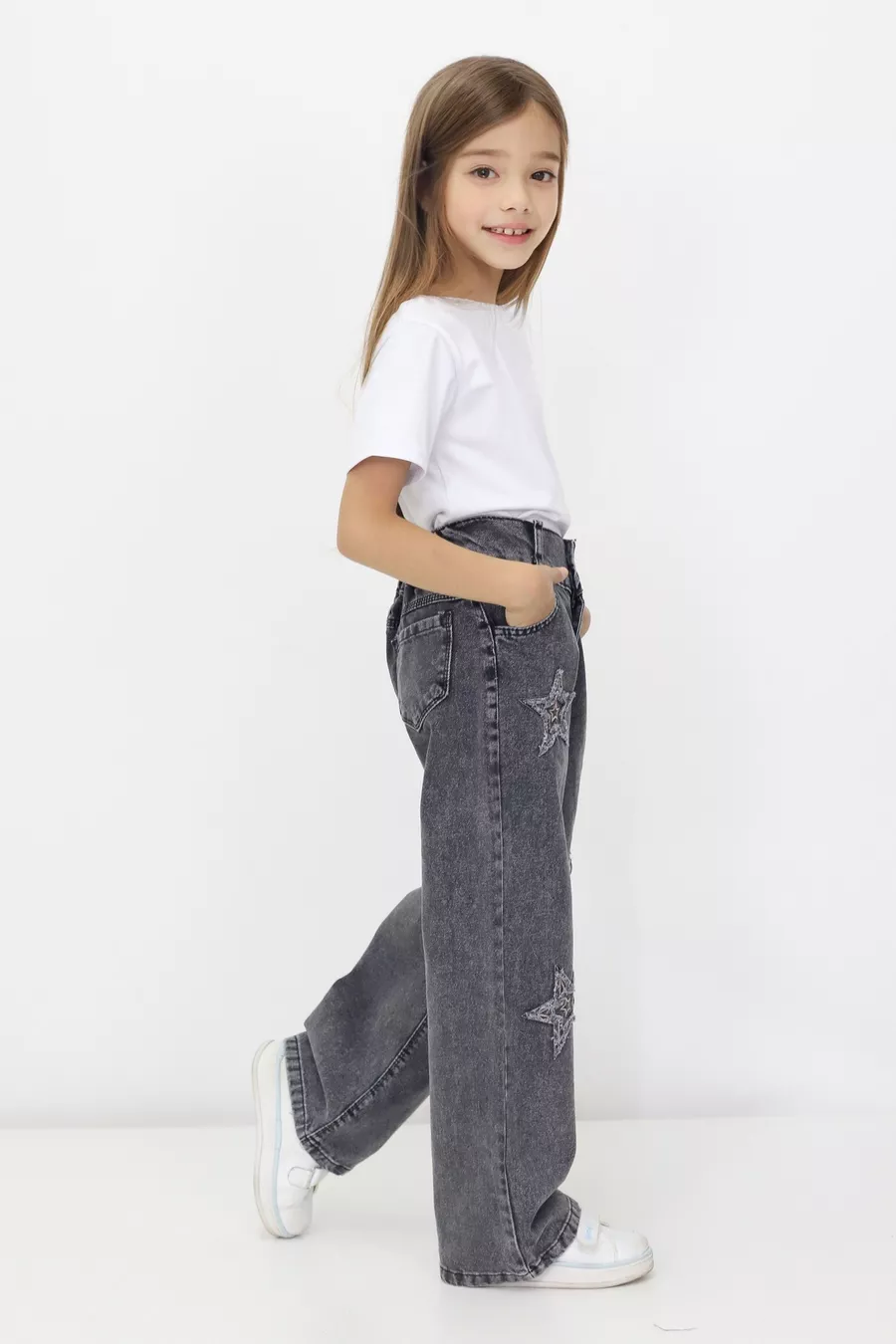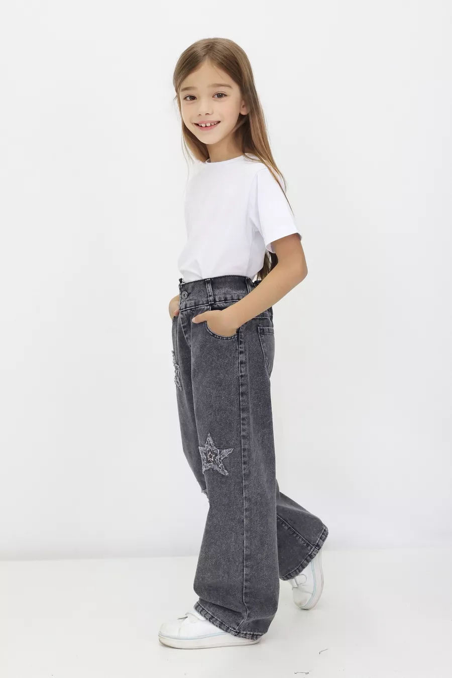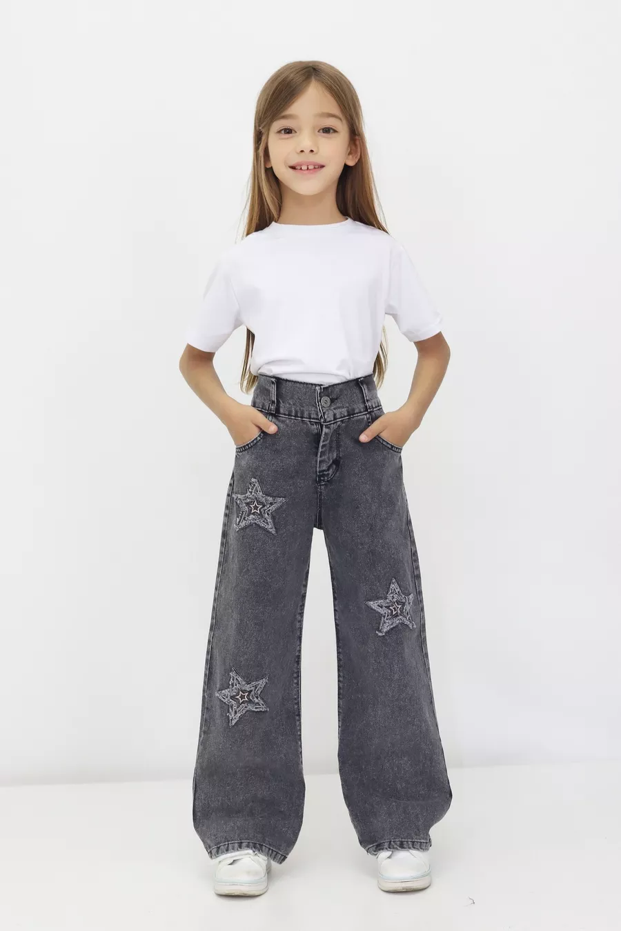Jean Slim Fille Sans Élasthanne Motif Étoiles Taille Élastique % Coton Denim Étoilé