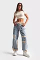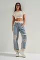 Jogger skater en denim pour femme, couleur Jeans Tint avec détails laser