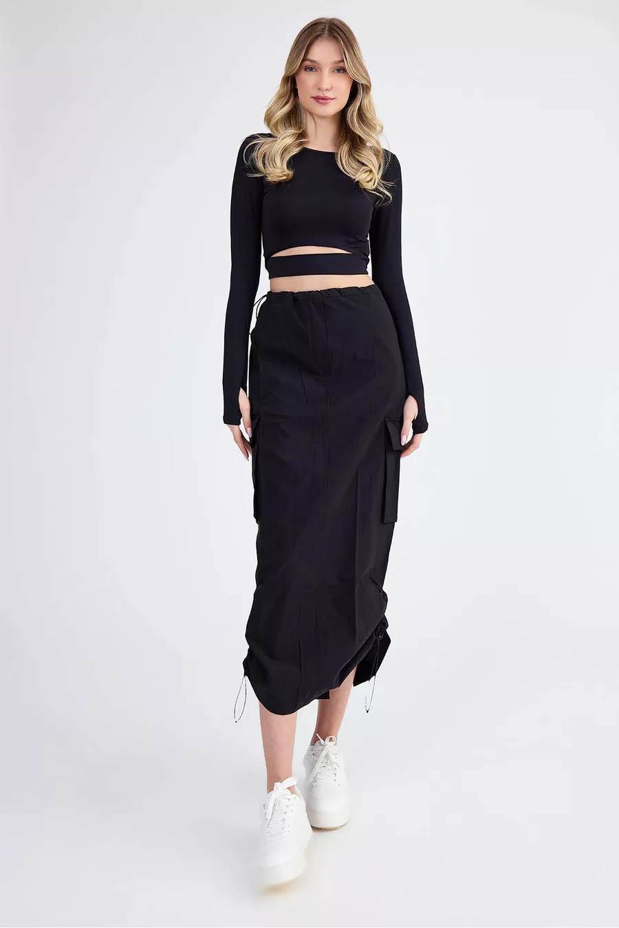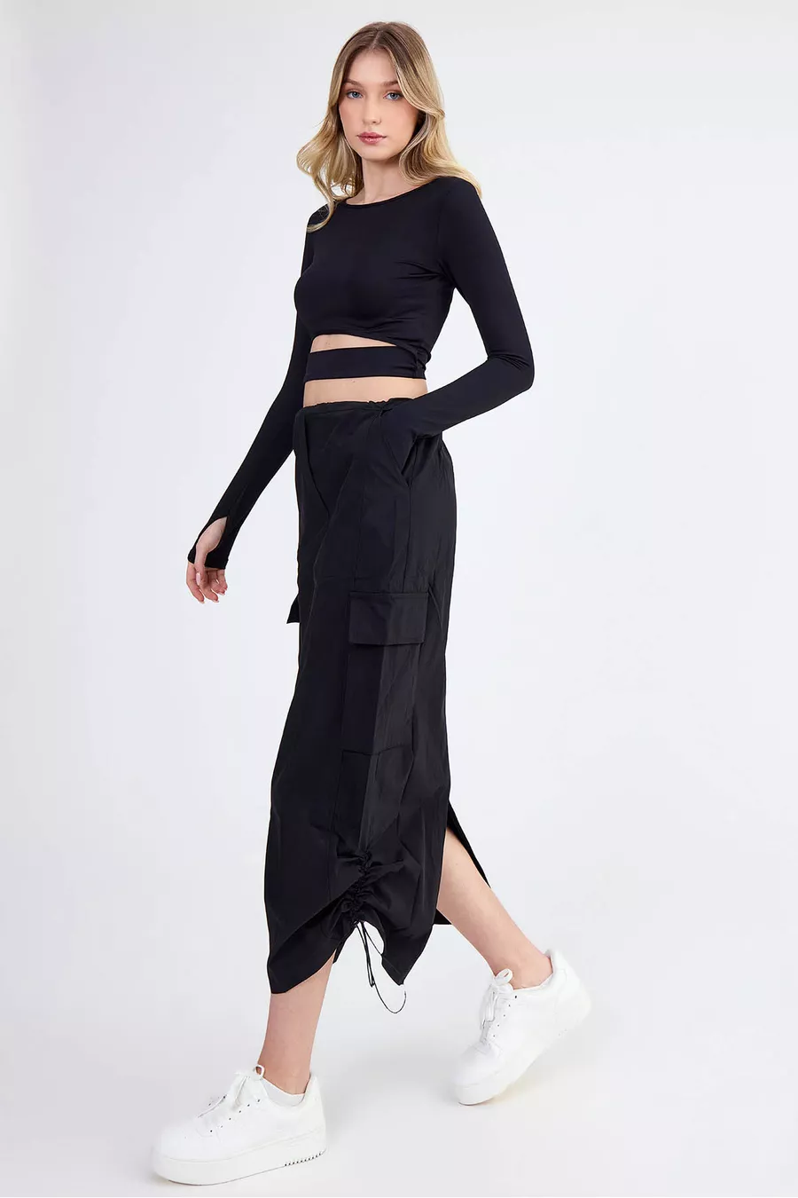 Jupe cargo en tissu parachute avec élastique
