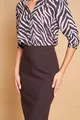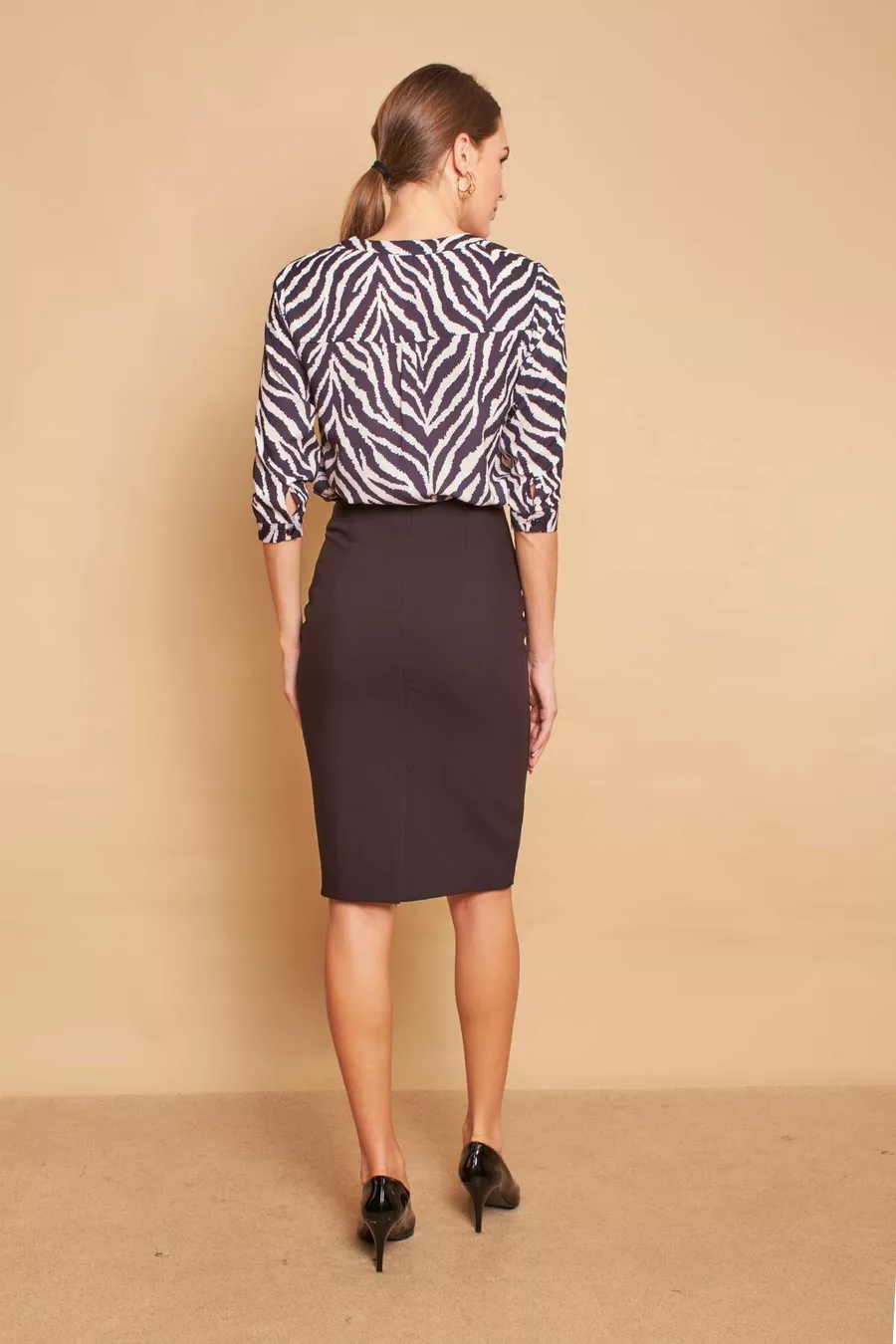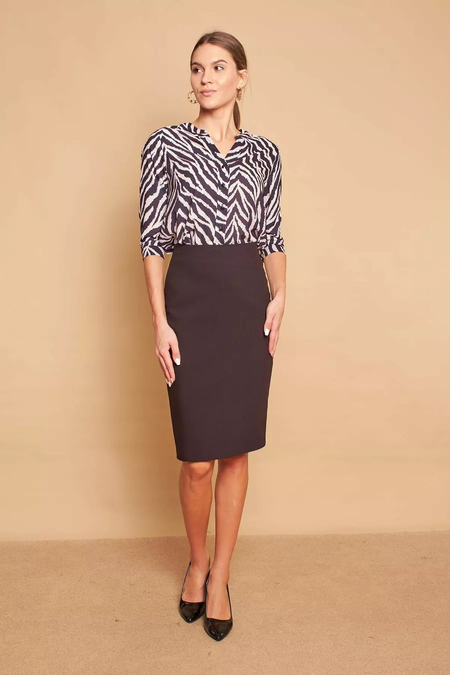 Jupe crayon de bureau en tissu avec doublure, taille haute, au-dessous du genou, légèrement extensible, avec fente - Noir