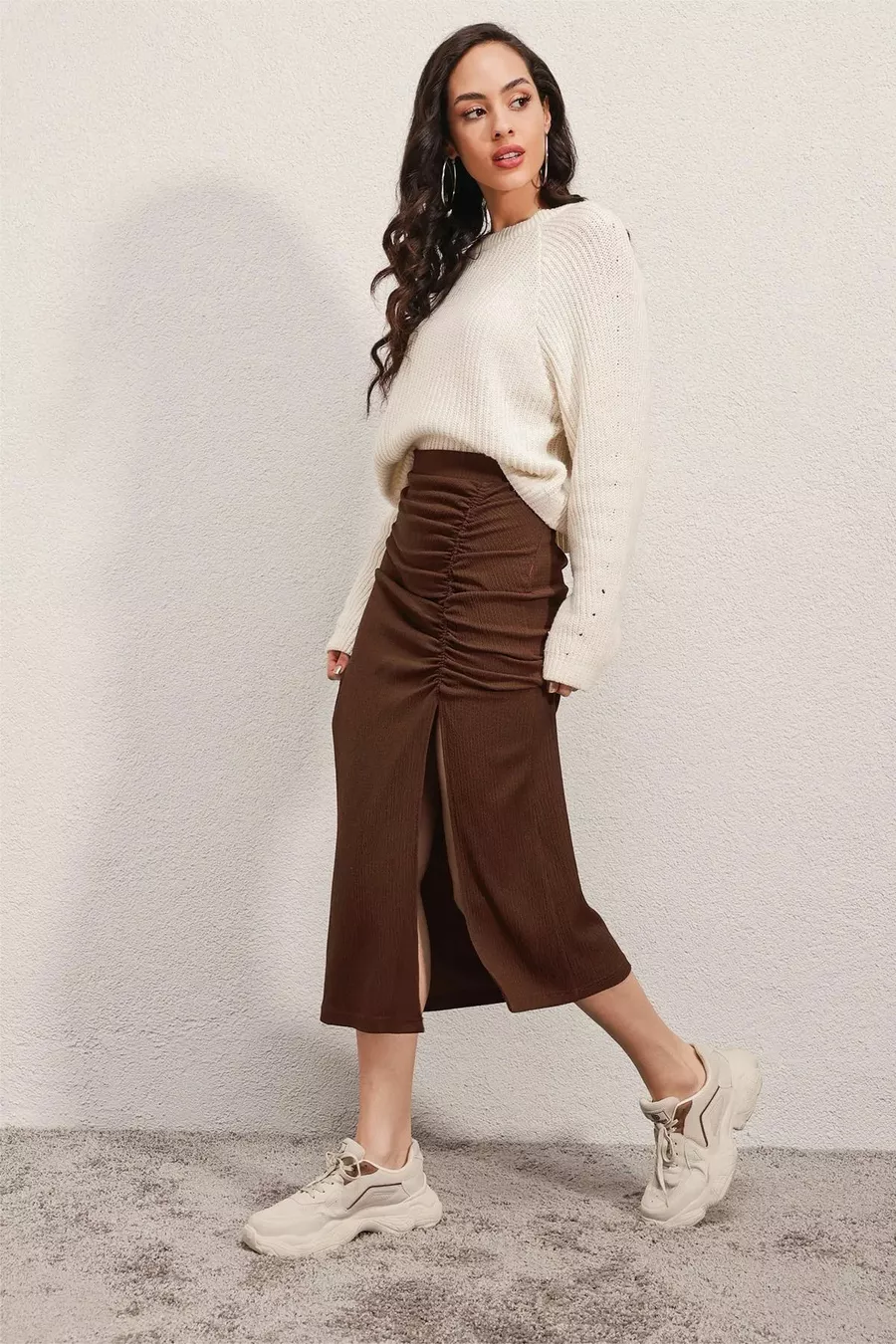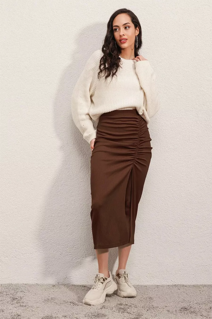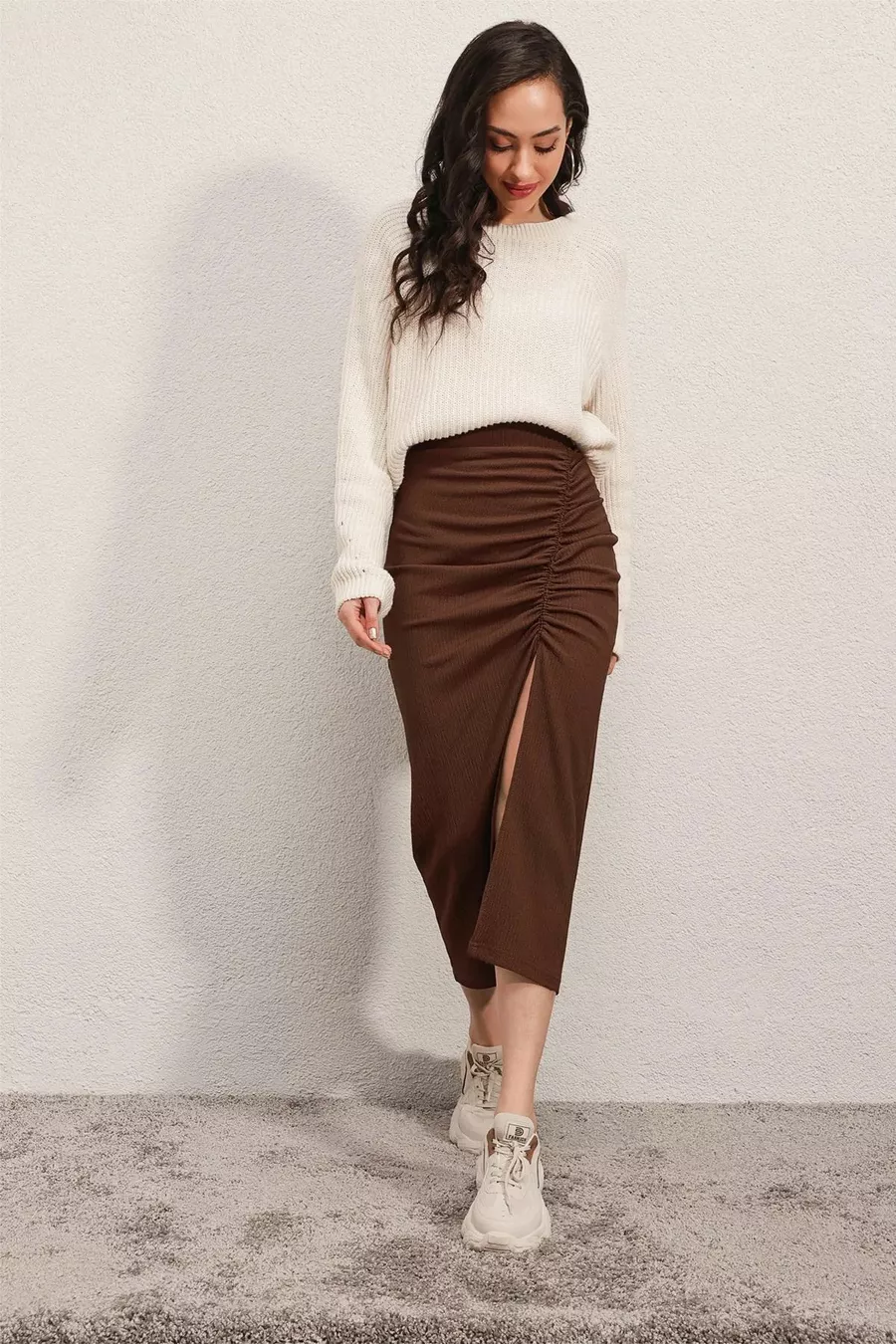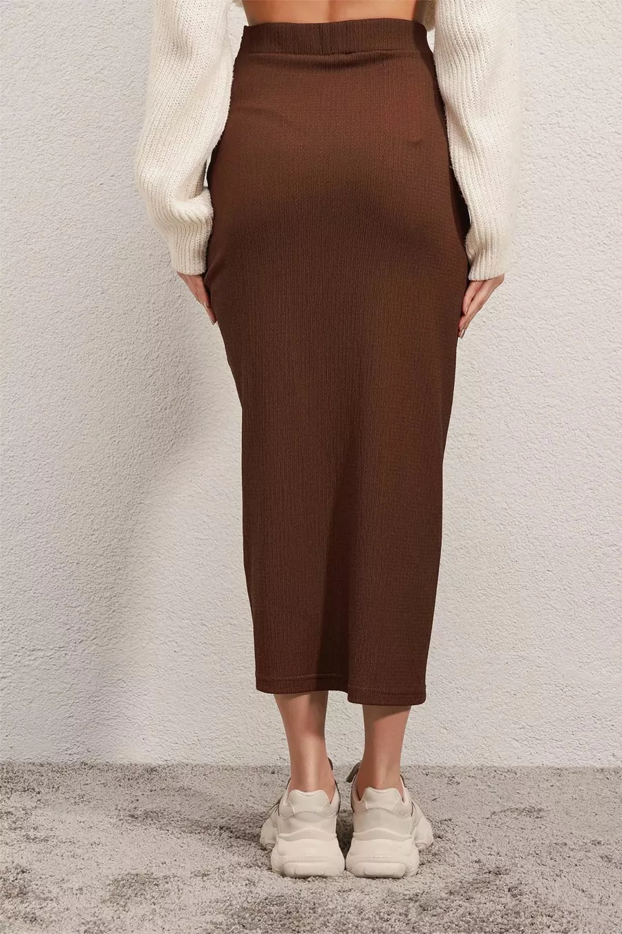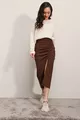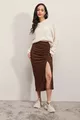 Jupe longue fendue marron femme