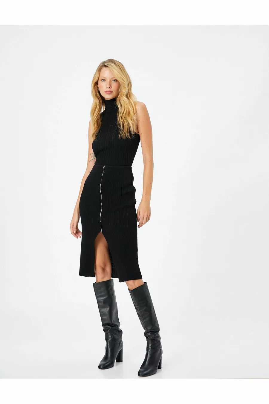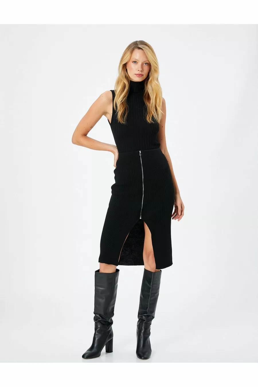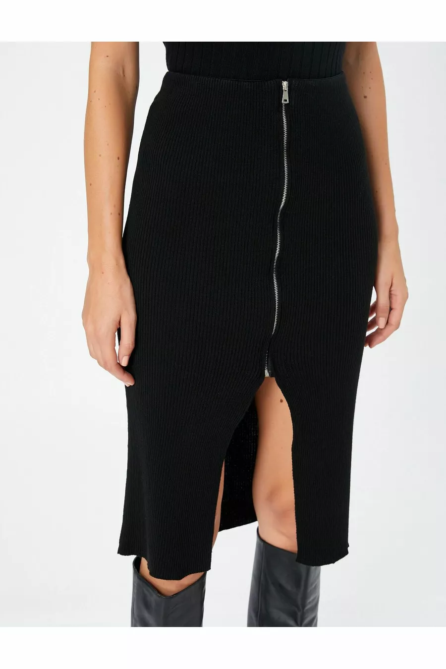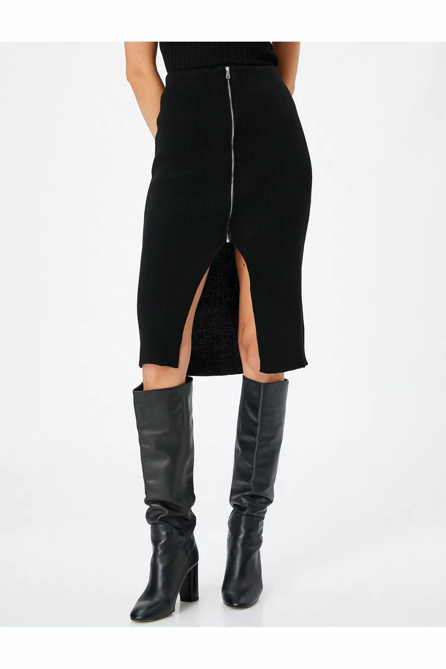 Jupe midi en tricot Fermeture éclair fendue sur le devant