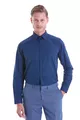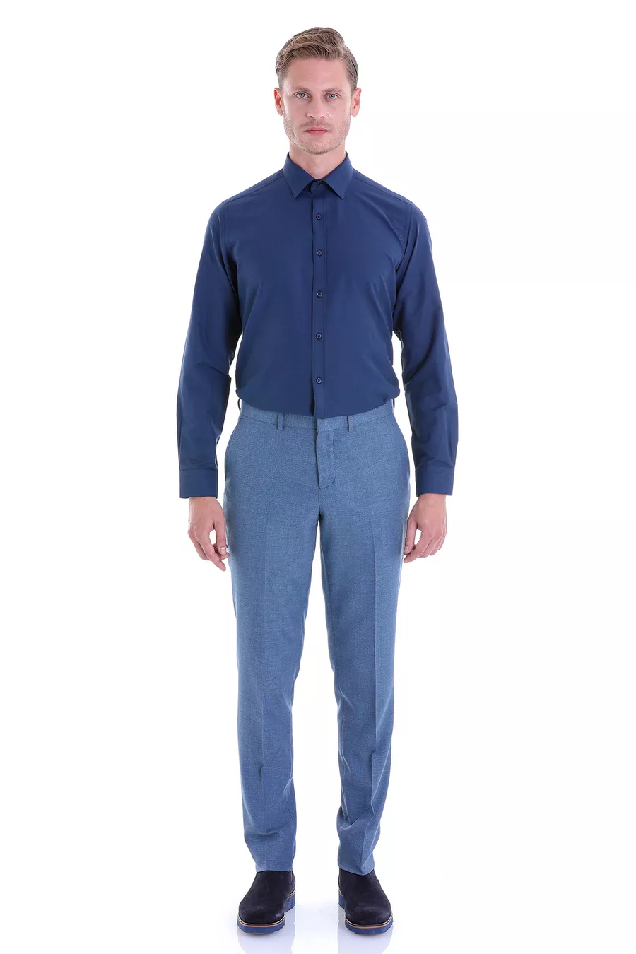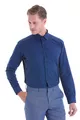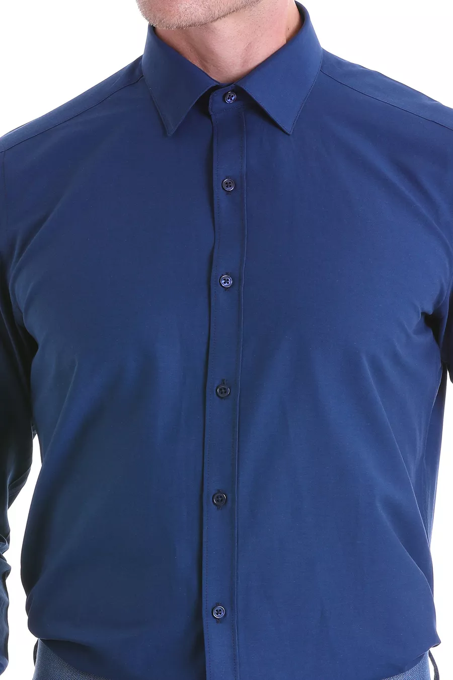 Lacivert Slim Fit Düz Pamuklu Slim Yaka Uzun Kollu Klasik Gömlek