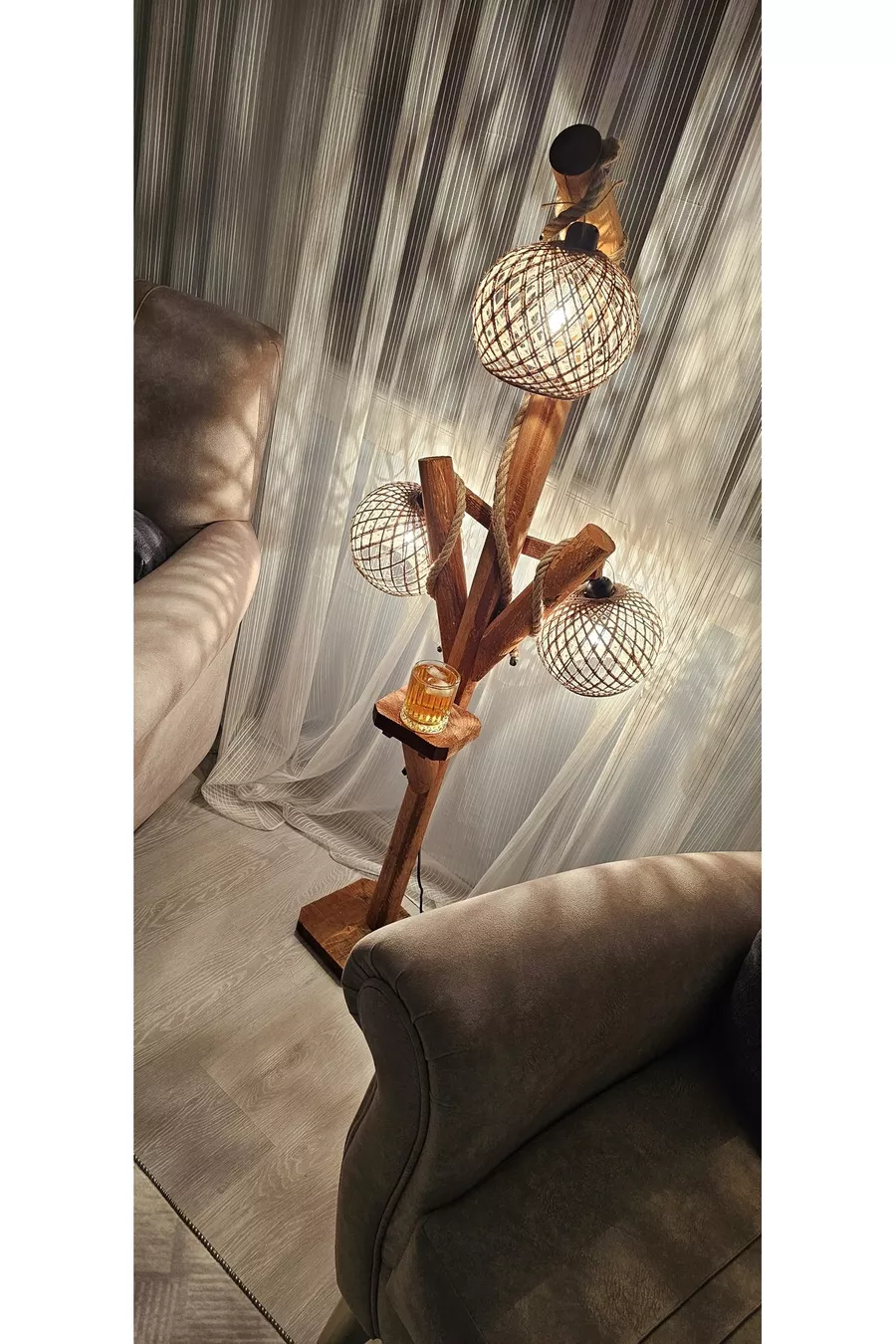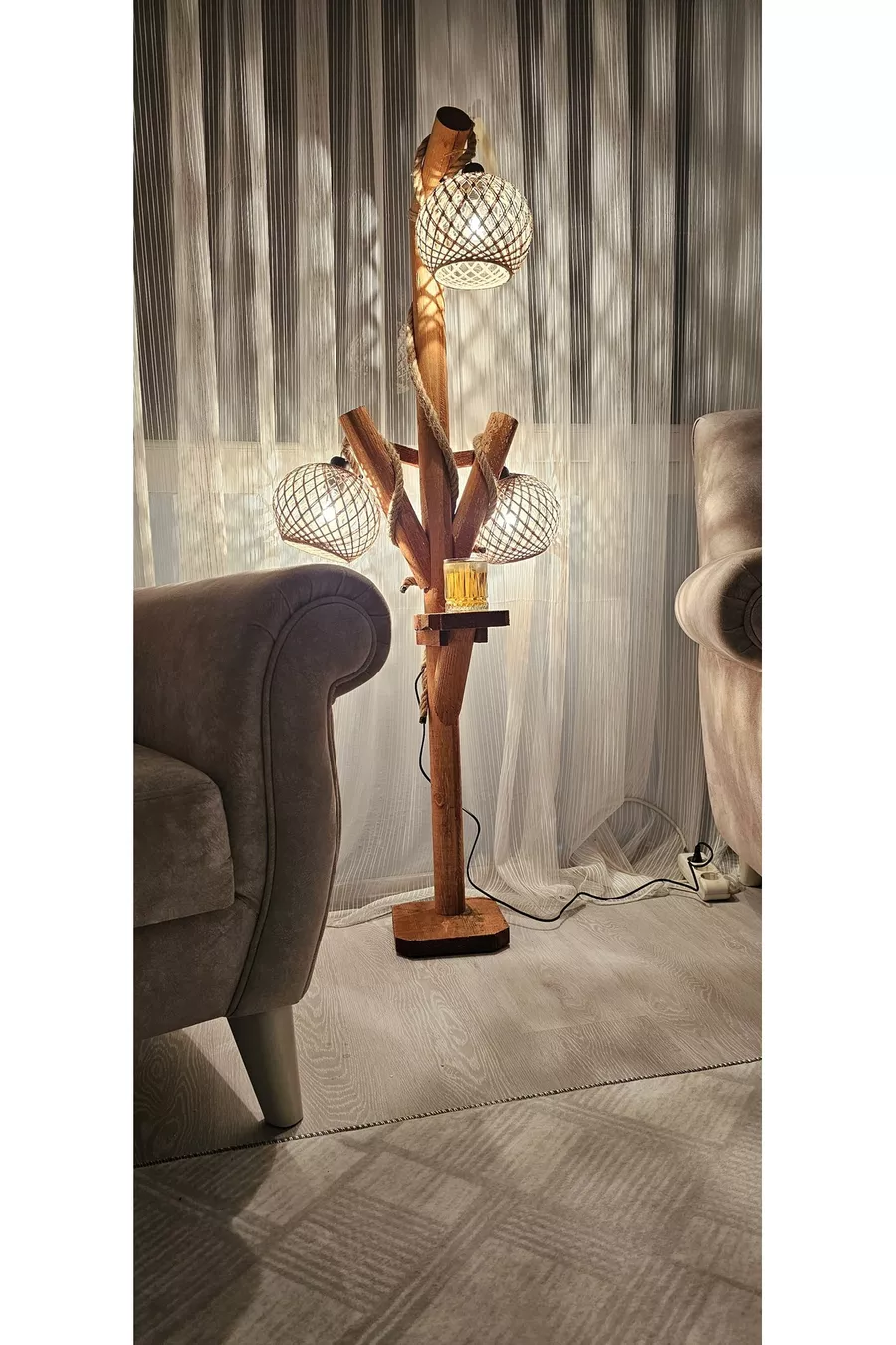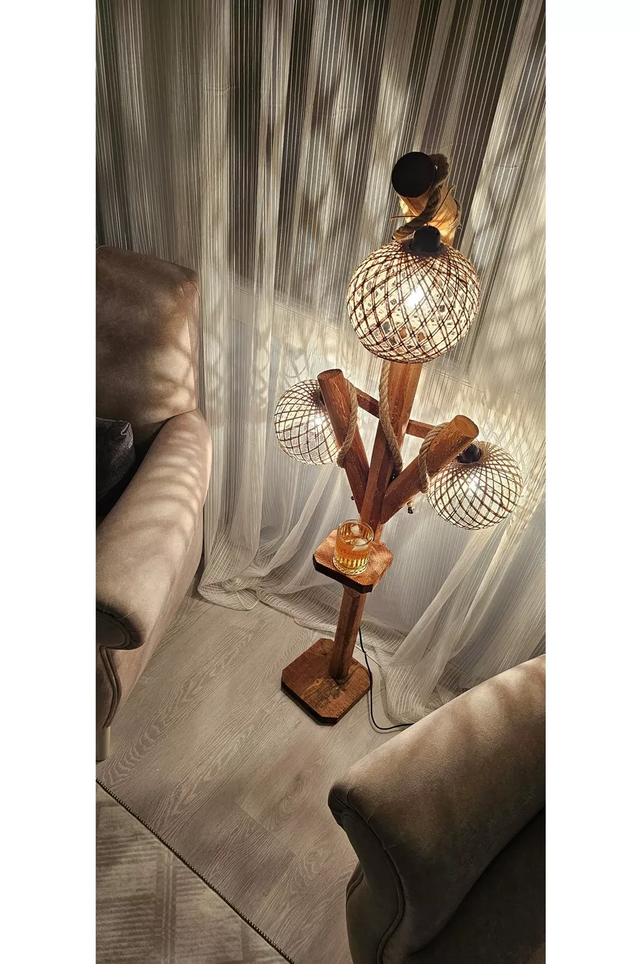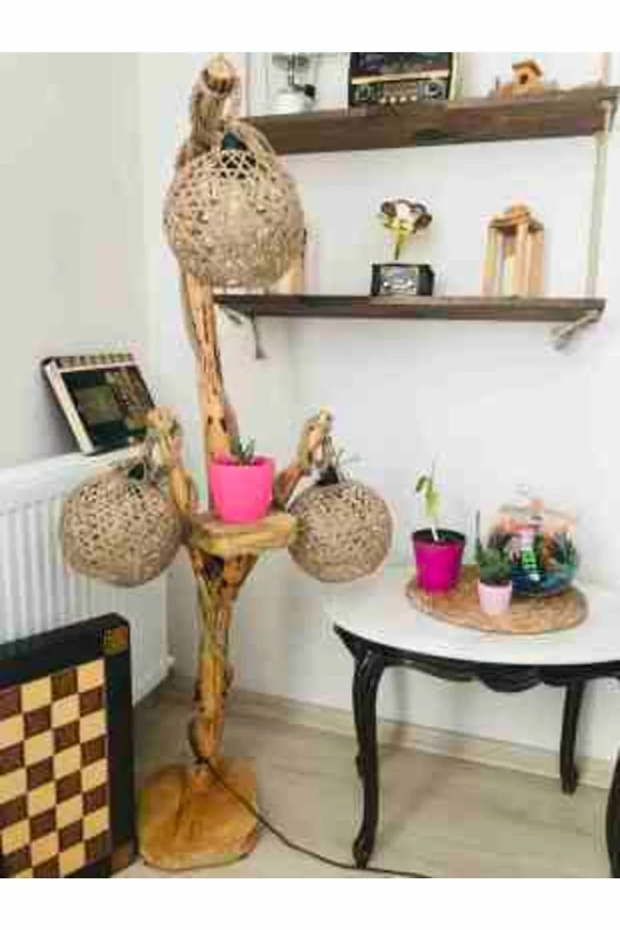Modèle : Avec table d'appoint Couleur : Marron Matériau : Bois Nombre de culots : 3 Type de douille : E14 Hauteur du sol : 101-150 cm Origine : TR