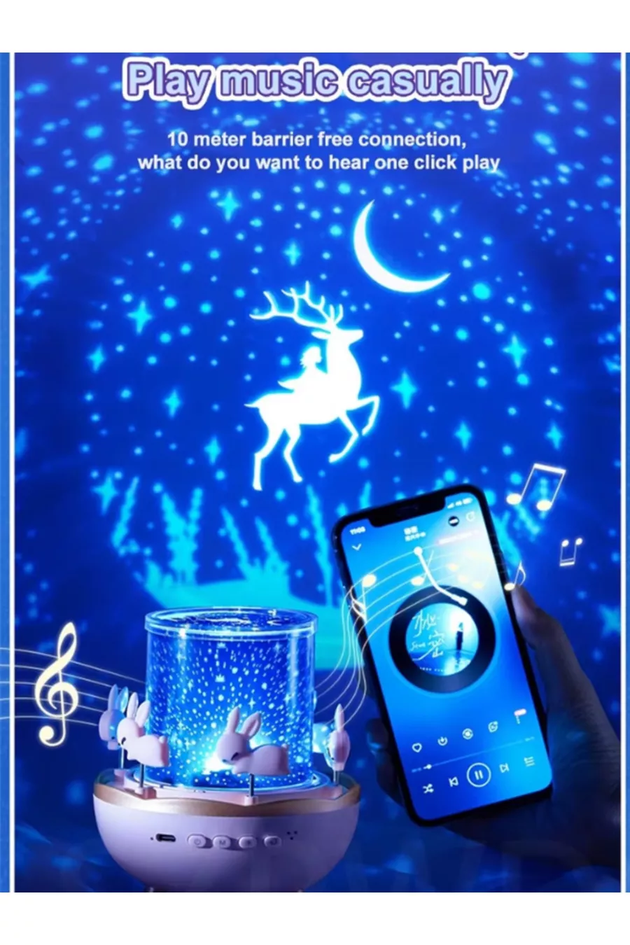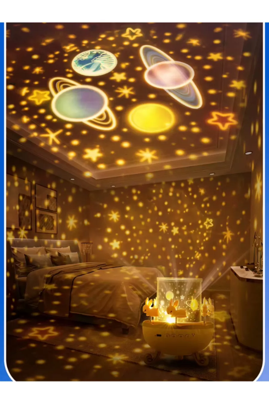 Lampe de Nuit Projecteur pour Enfants, Éducative, Musicale avec Effets, Planètes, Lune et Étoiles, Conte Lumineux