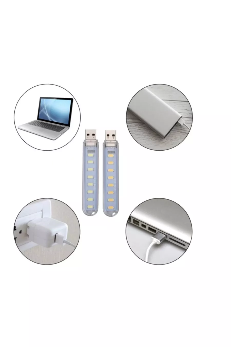 Lampe LED portable mini USB à 8 LED lumière blanche SMD pour camping