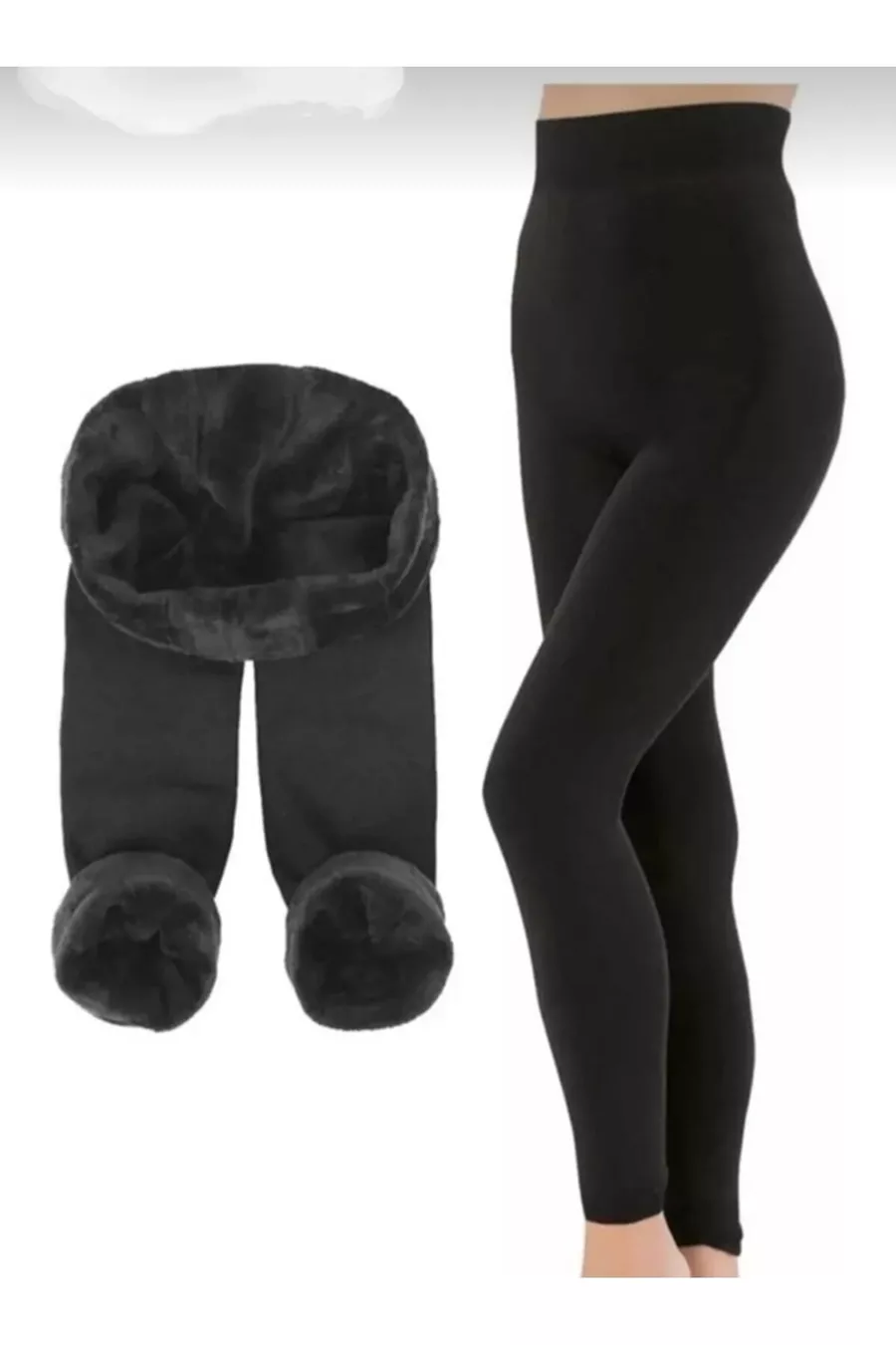 Legging d'hiver thermique pour femme, noir, doublé de peluche