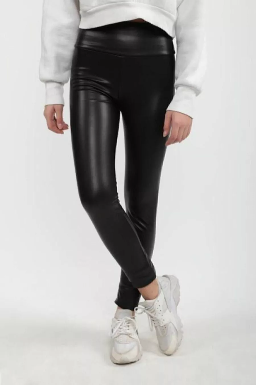 Legging en cuir noir pour femme, taille haute, intérieur gratté