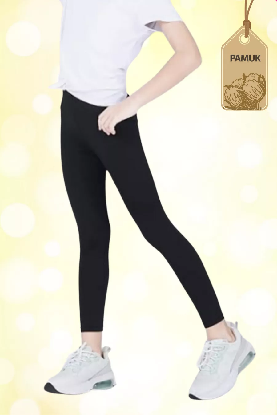 Legging Noir Fille - Legging Noir en Coton Confortable de Saison, Respirant et Extensible, Long