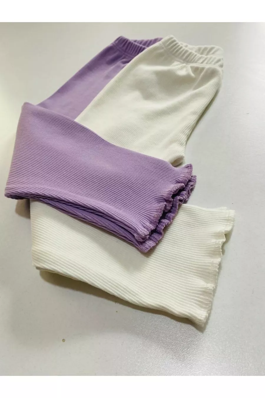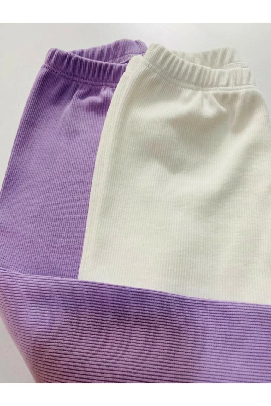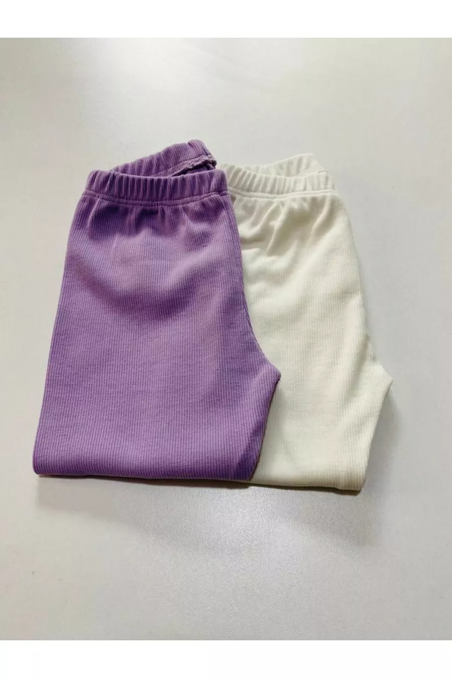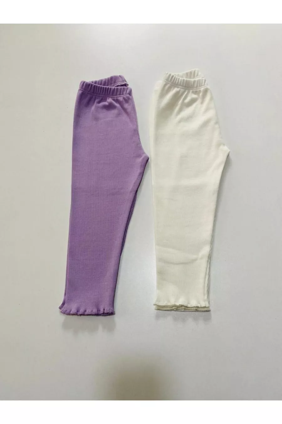 Legging pour enfant fille et garçon Lot de 2 Violet clair - Blanc à taille flexible