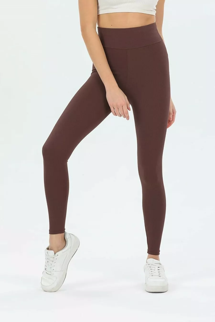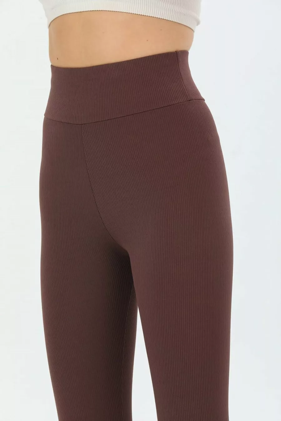 Legging Taille Haute Effet Sculptant pour Femme en Velours Côtelé Marron
