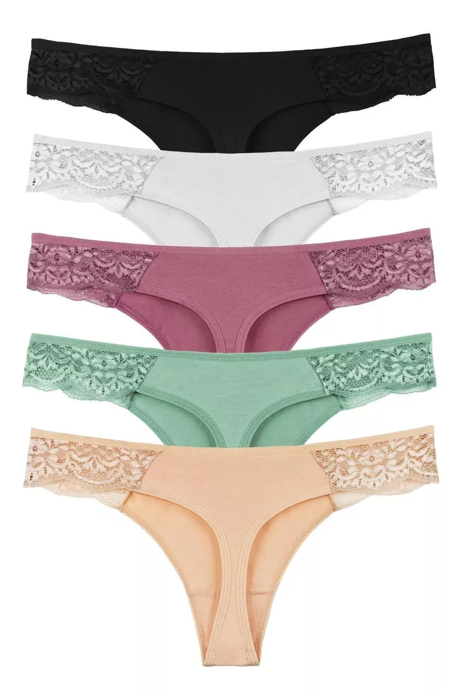 Lot de 5 culottes string pour femme avec détails en dentelle - (GRANDE TAILLE)