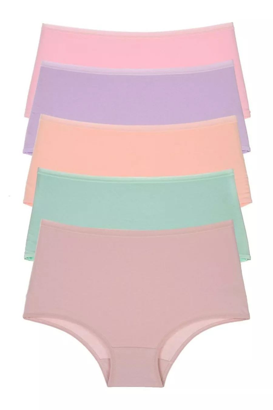 Lot de 5 culottes pour femmes, taille haute, en coton extensible, couleur saumon