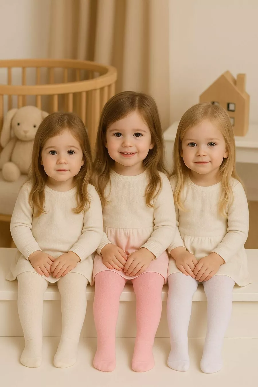 Lot de 3 Chaussettes Collants Unis en Coton pour Filles et Enfants