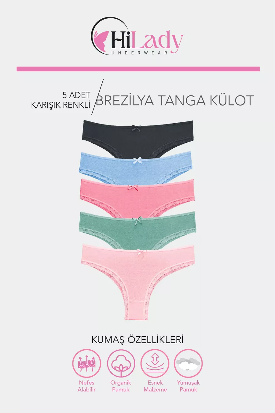 Lot de 5 culottes pour femmes Brésiliennes, tissu en coton doux, culottes foncées et douces