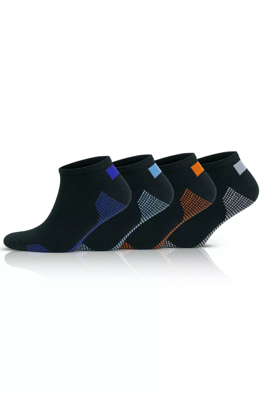Lot de 4 chaussettes courtes de sport pour homme en coton avec fond noir et motifs colorés