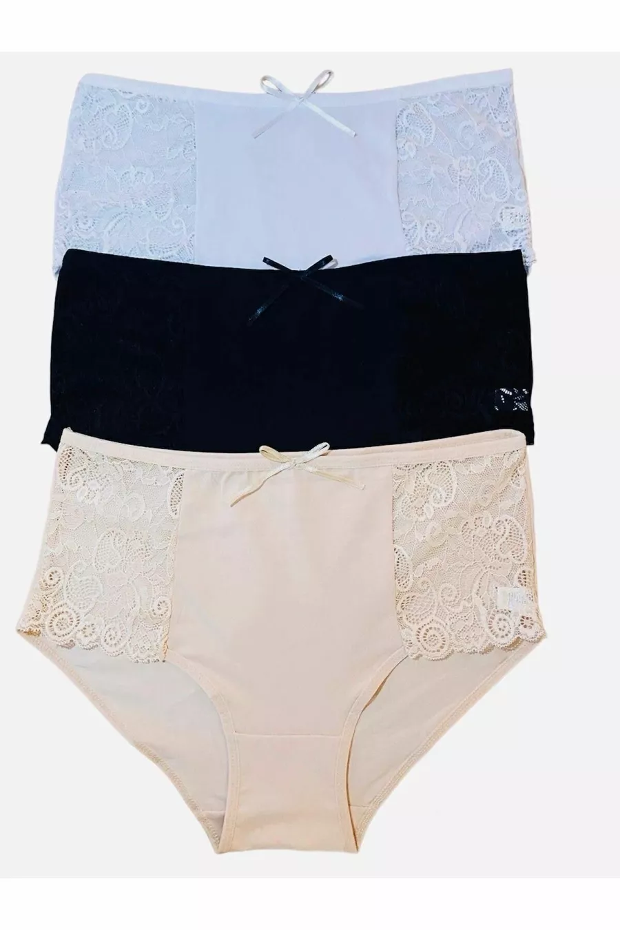 Lot de 3 culottes à dentelle sur le côté Noir-blanc-nude