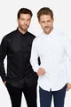Lot de 2 Chemises Slim Fit Noir et Blanc pour Homme, Faciles à Repasser, Absorbantes de Transpiration, Respirantes, pour Toutes Saisons
