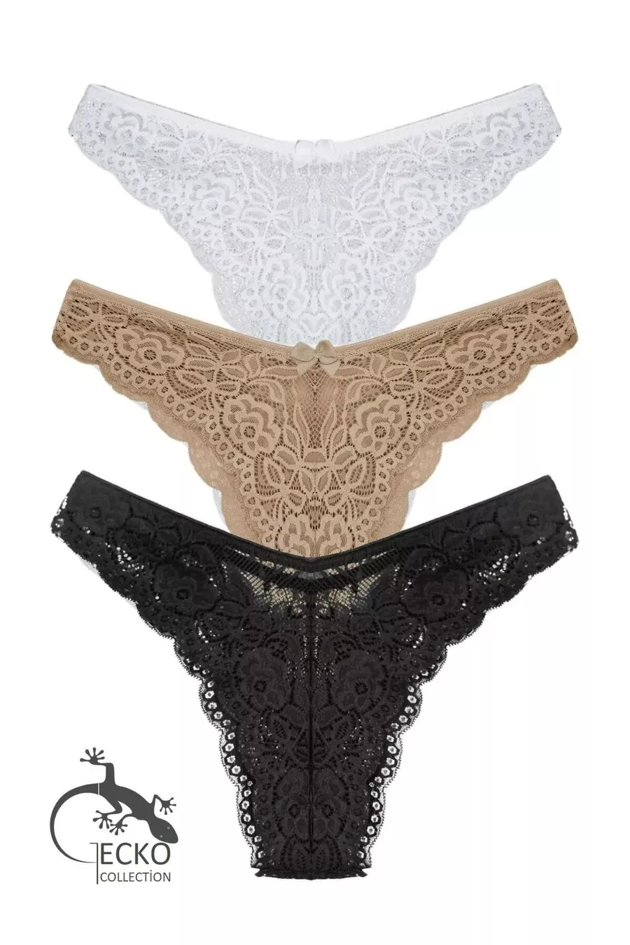 Lot de 3 culottes féminines brésiliennes en dentelle