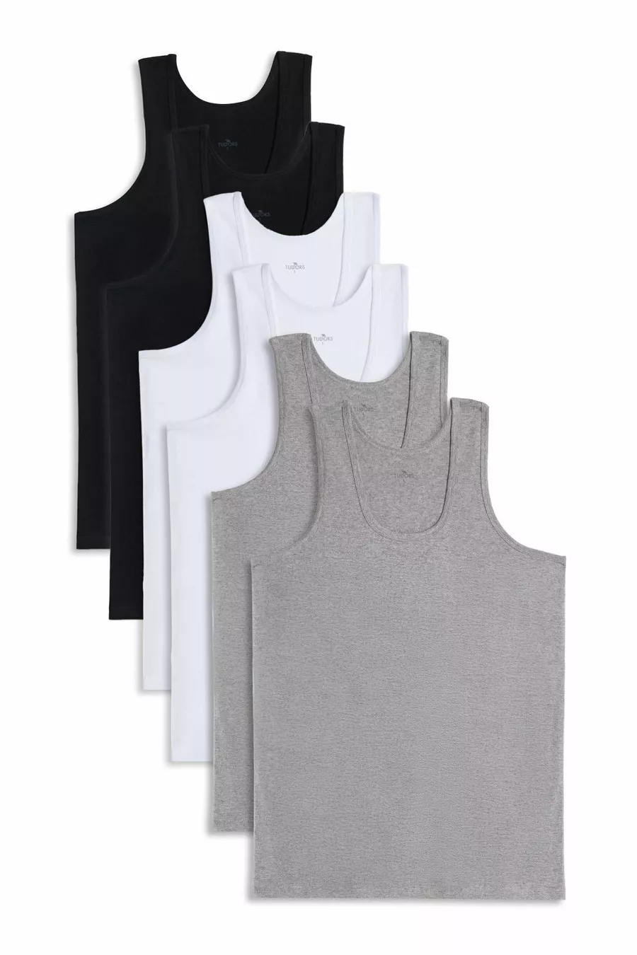 Lot de 6 débardeurs pour hommes en coton, en noir, blanc et gris, coupe standard, ajuste classique