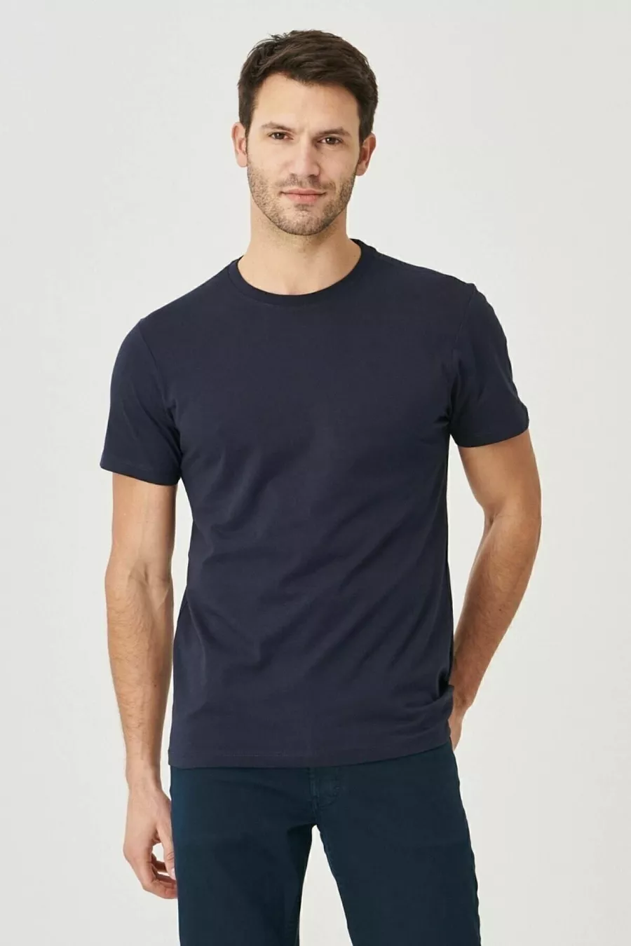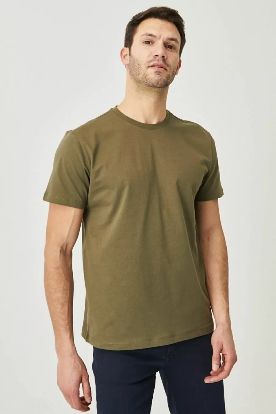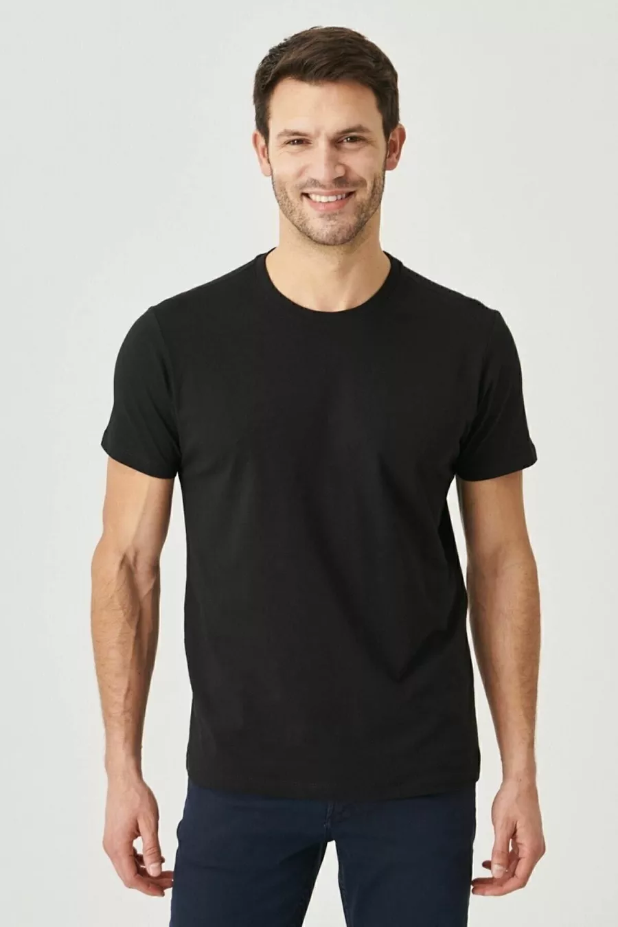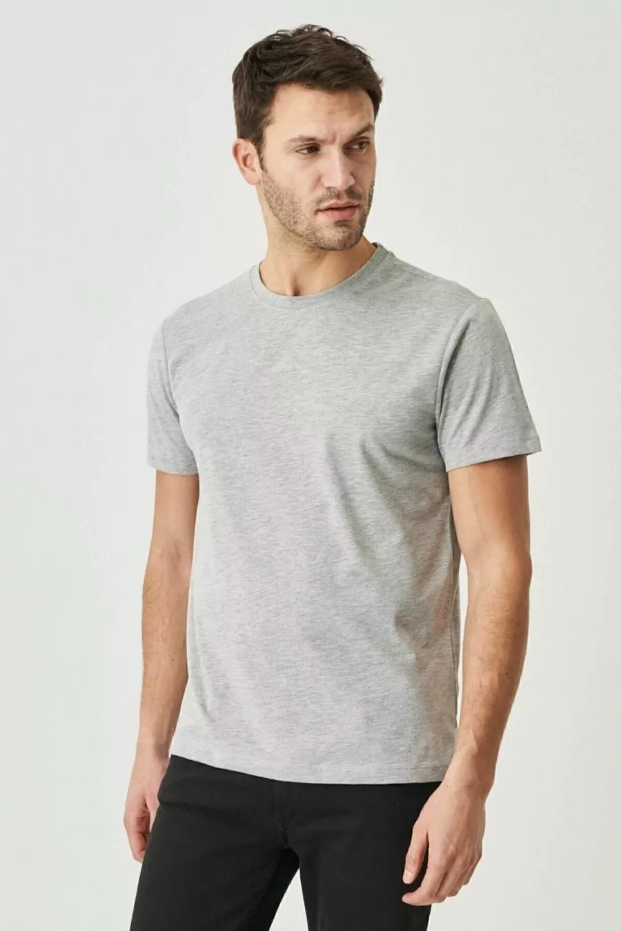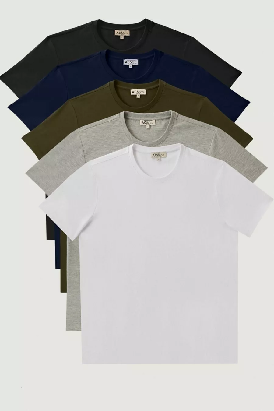 Lot de 5 T-shirts basiques pour hommes, col rond, slim fit, en coton %, couleurs blanc-bleu marine-noir-kaki-gris chiné