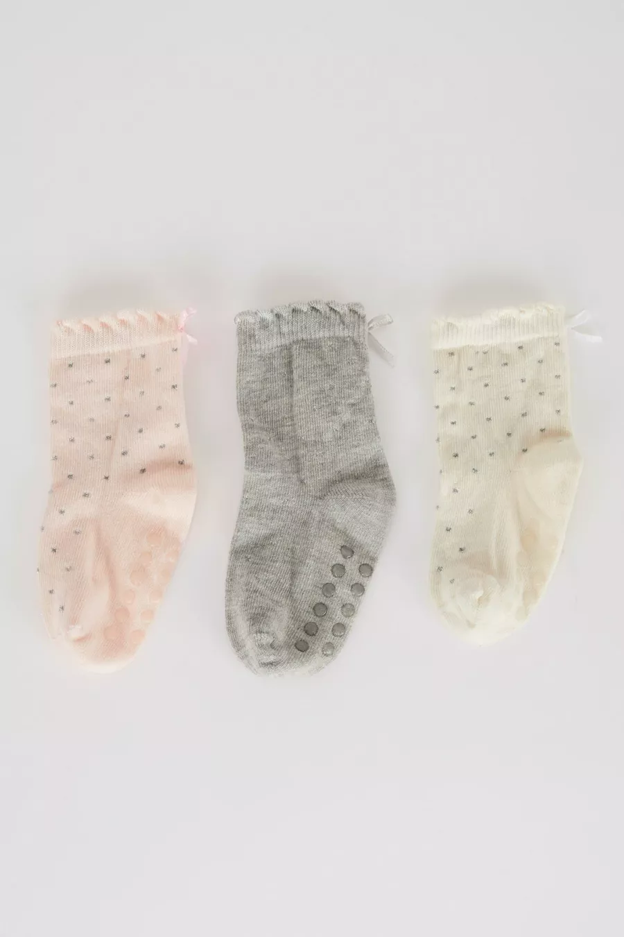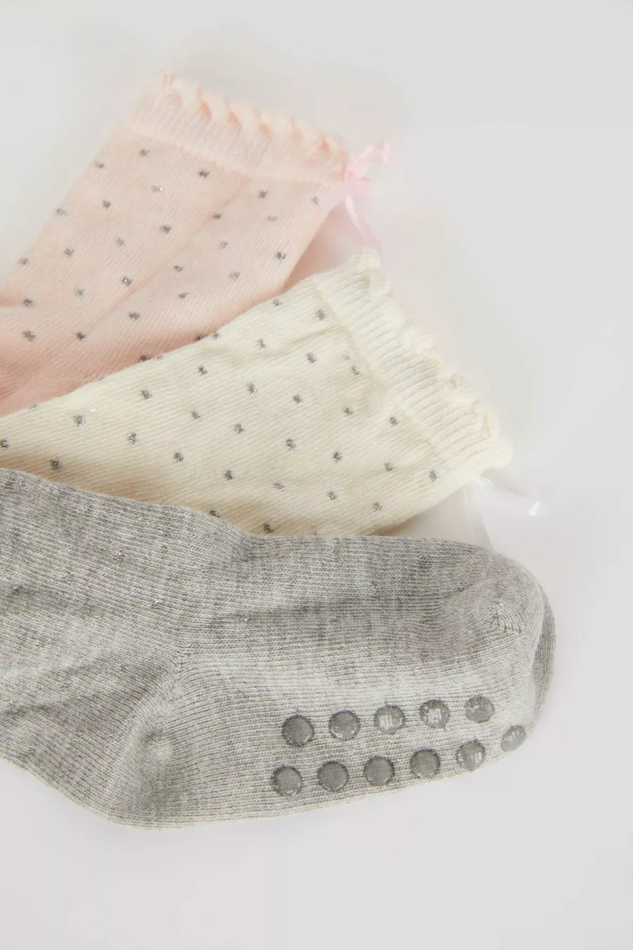 Lot de 3 Chaussettes Longues en Coton pour Fille avec Semelle Antidérapante ns