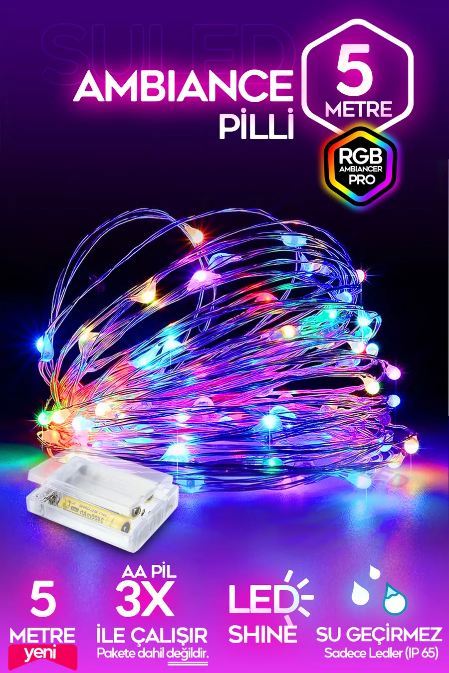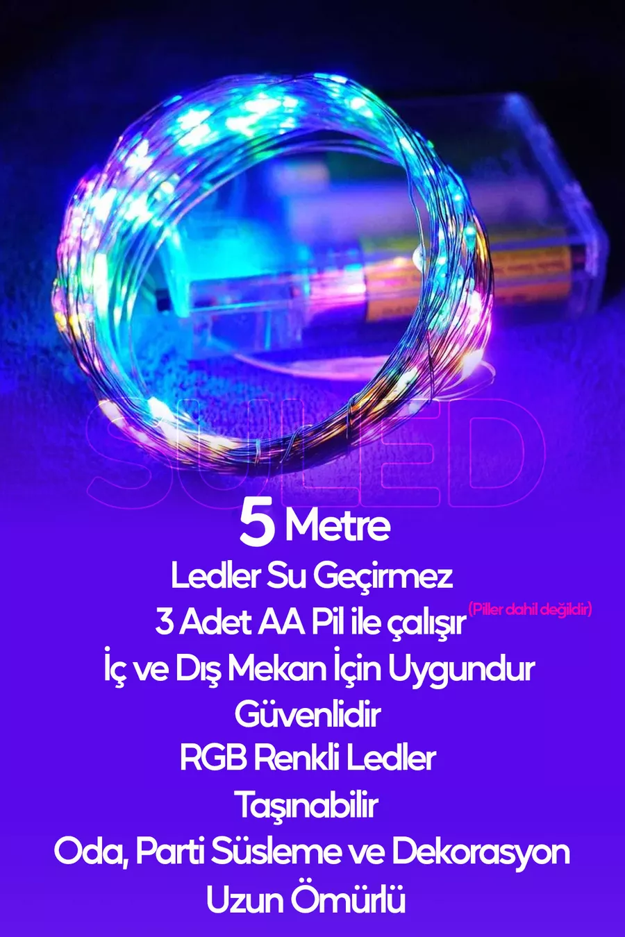 Lumière LED RGB à piles 5 mètres pour intérieur et extérieur, décoration de fête, lumière de célébration, décoration LED colorée