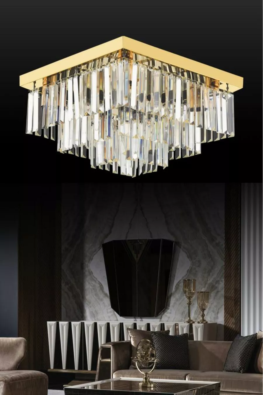 Matériau : Métal Modèle : Avec pierres Type de douille : E27 Nombre de têtes d'ampoule : 4 Couleur : Or Dimensions : 50 x 50 Hauteur : 35 - 50 cm Zone d'utilisation : Salon / Salle de séjour Origine : TR