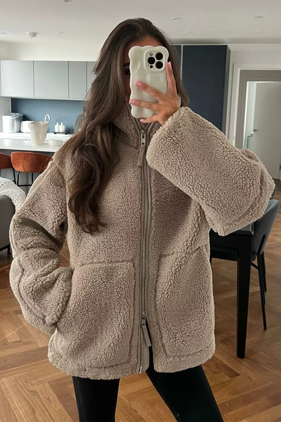 Modèle : Oversize Type de col : Col de veste Matériau : Peluche Type de tissu : Tissage Couleur : Marron Fermeture : Fermeture éclair Motif : Uni Détail du produit : Détail en peluche Type de produit : Uni Poches : Double poche Longueur des manches : Longue Type de manches : Manches longues Épaisseur : Moyenne Doublure : Doublé Longueur : Regular Occasion : Quotidien Silhouette : Basique Technique : Aucune Collection : Basique Caractéristique supplémentaire : Lavable Technique de rembourrage : Sans rembourrage Détail durabilité : Non État de la ceinture / bande : Sans ceinture Matériau de remplissage : Polyester Persona : Cool & Confort Technique d'impression / broderie : Sans impression Composition du matériau : 100 % Polyester Type de tissage : Peluche Instructions de lavage : Type 2 Origine : TR État de la boîte : Sans boîte