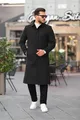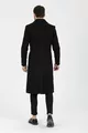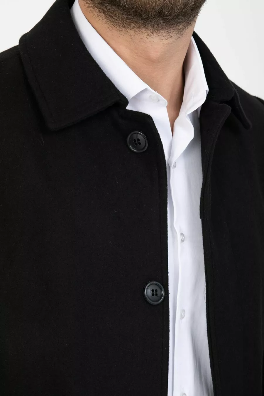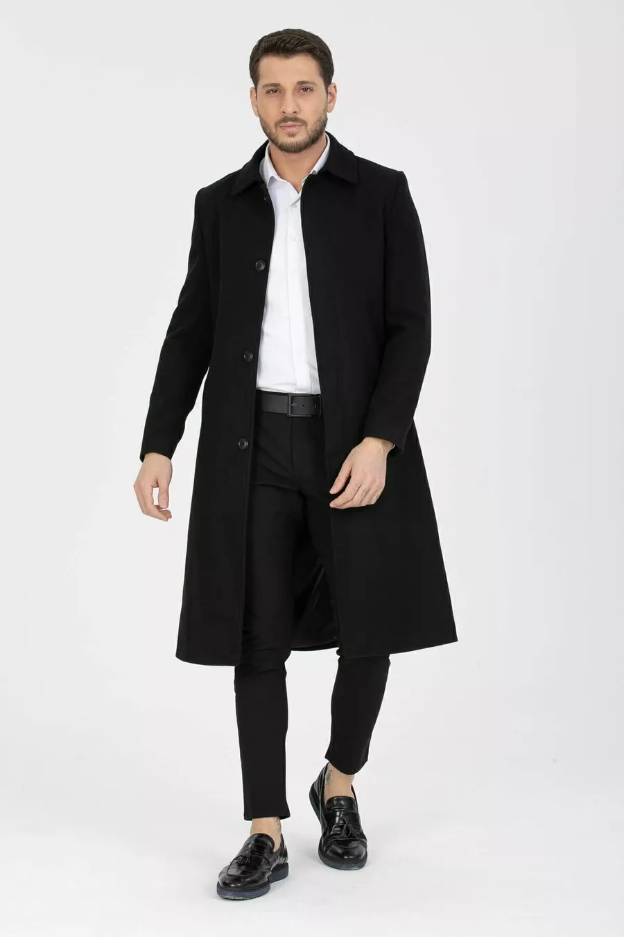 Manteau long pour homme noir à coupe ajustée avec col de chemise & manteau en laine bouillie