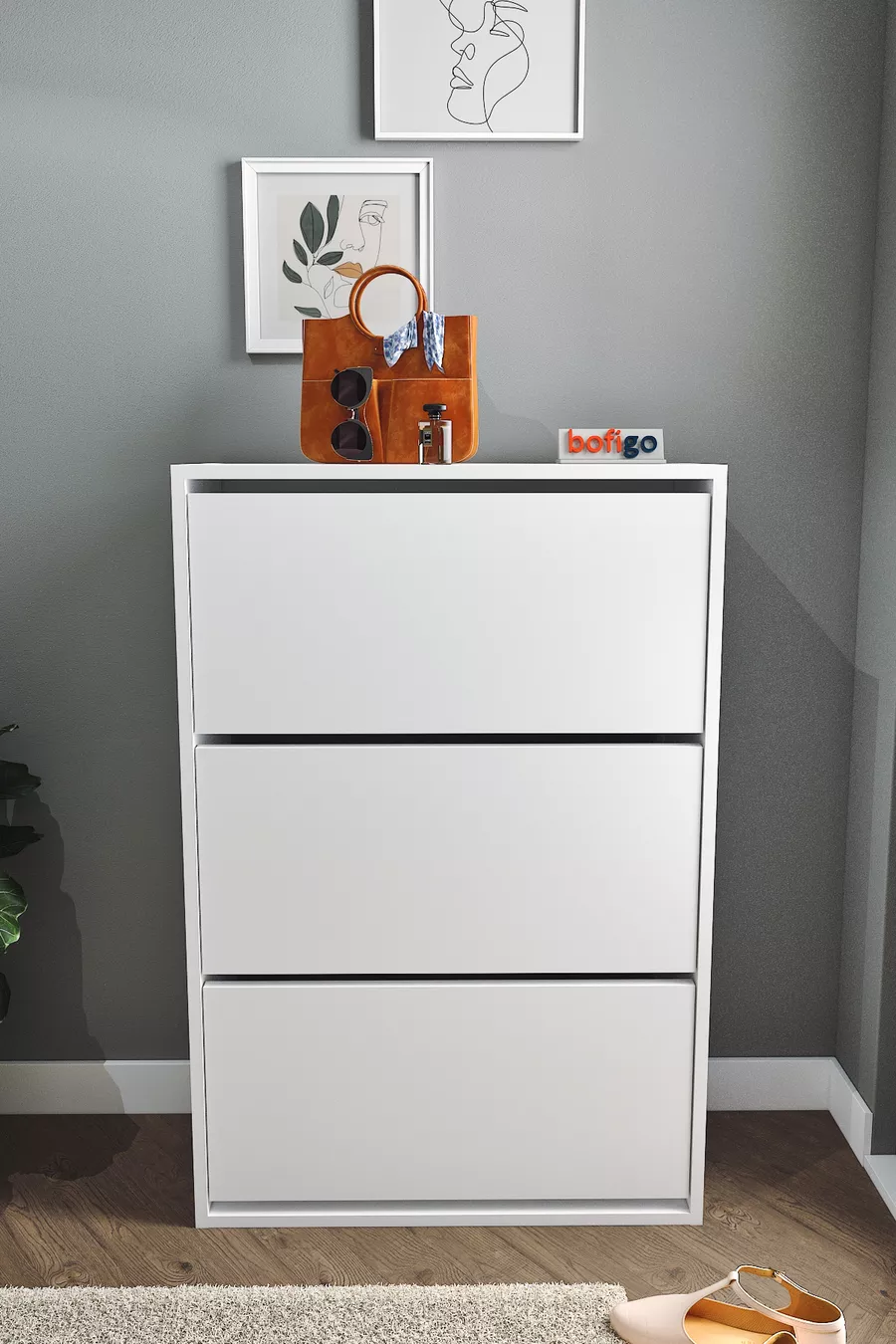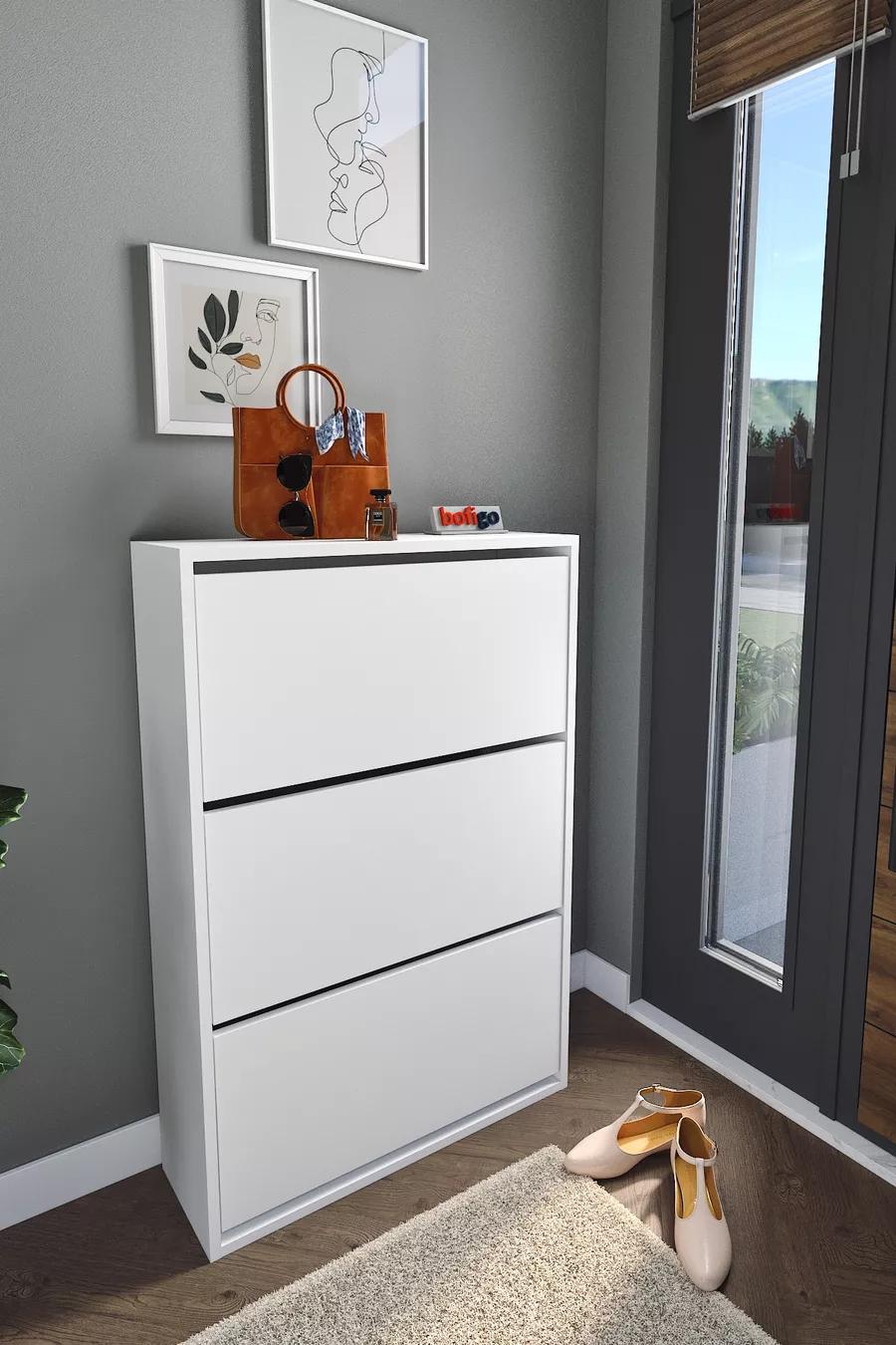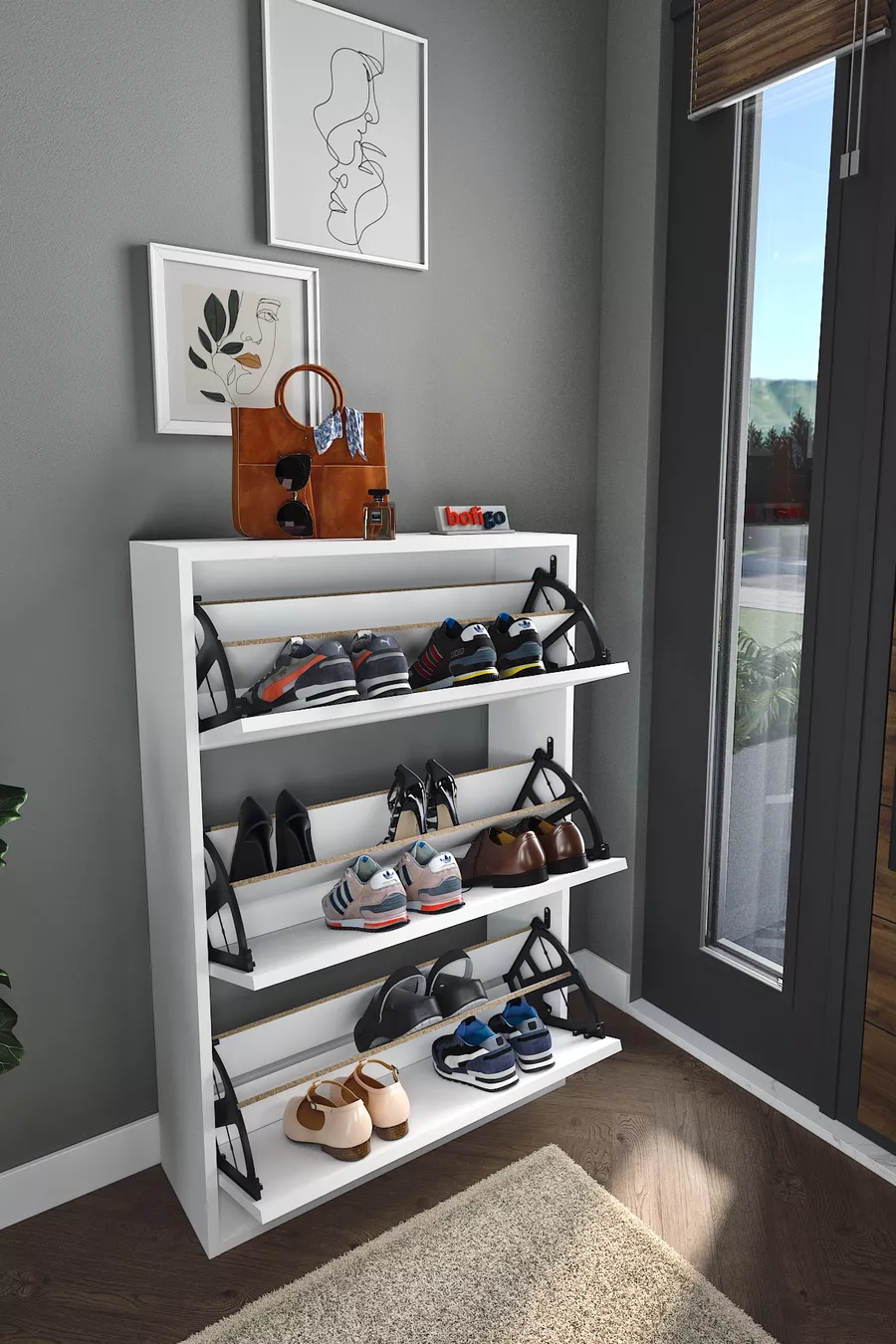 Meuble à chaussures à abattant avec étagère coulissante, meuble à chaussures à 3 compartiments, blanc