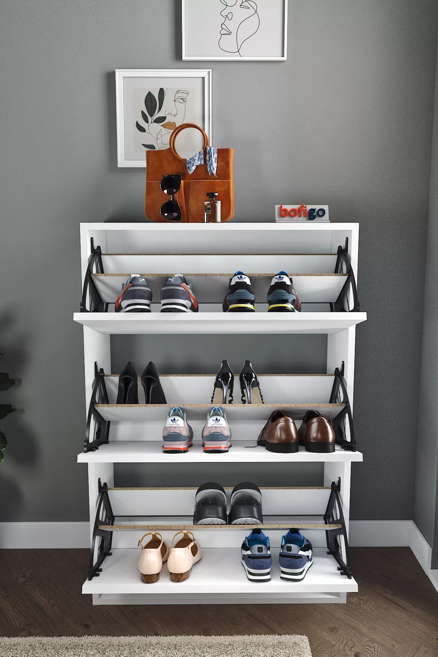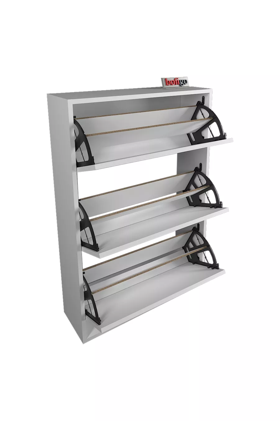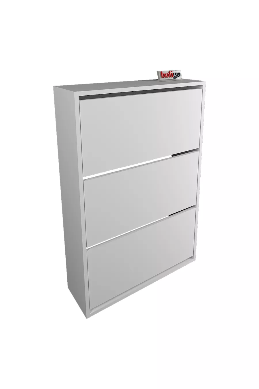 Meuble à chaussures à abattant avec étagère coulissante, meuble à chaussures à 3 compartiments, blanc