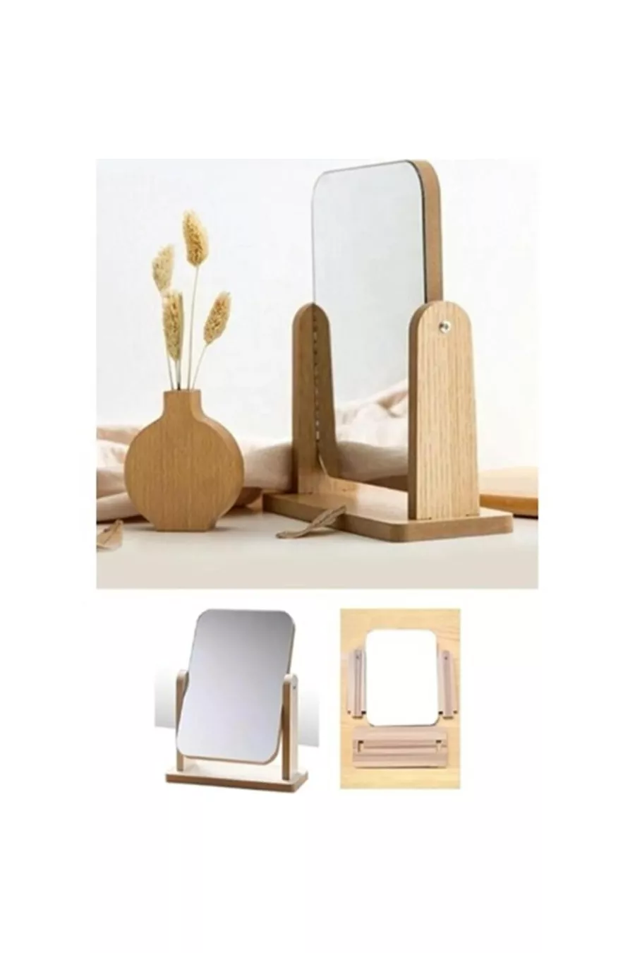 Matériel : Bois Couleur : Beige Nombre de pièces : 4 Forme : Ovale Type : Miroir de maquillage Origine : CN Caractéristique : Aérée