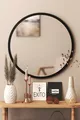Matériau : Bois Couleur : Noir Dimensions : 6 x 6 Nombre de pièces : 1 pièce Forme : Rond Type : Miroir mural Caractéristique : Automatique