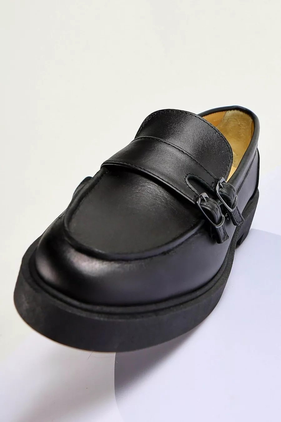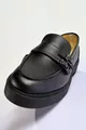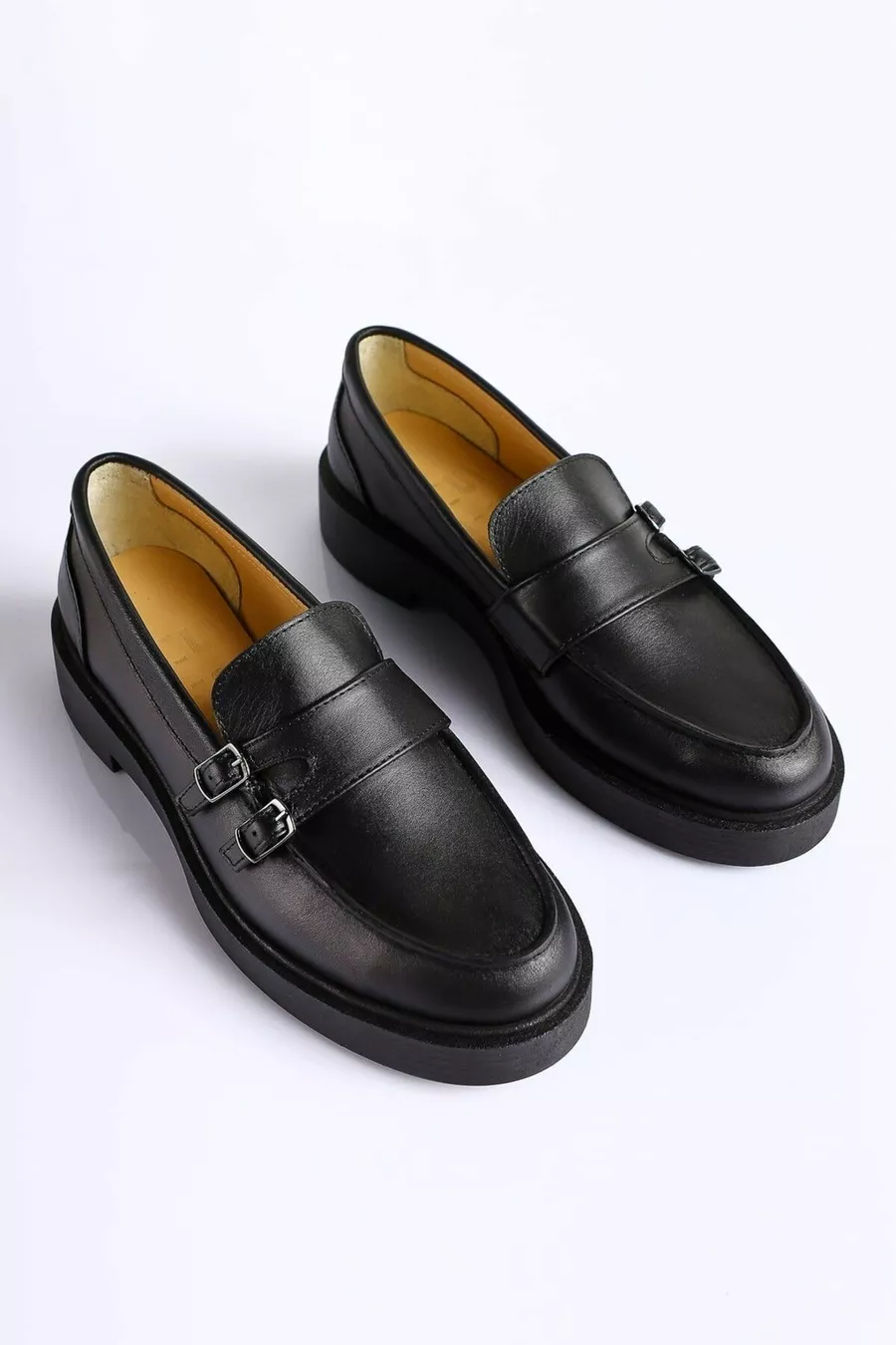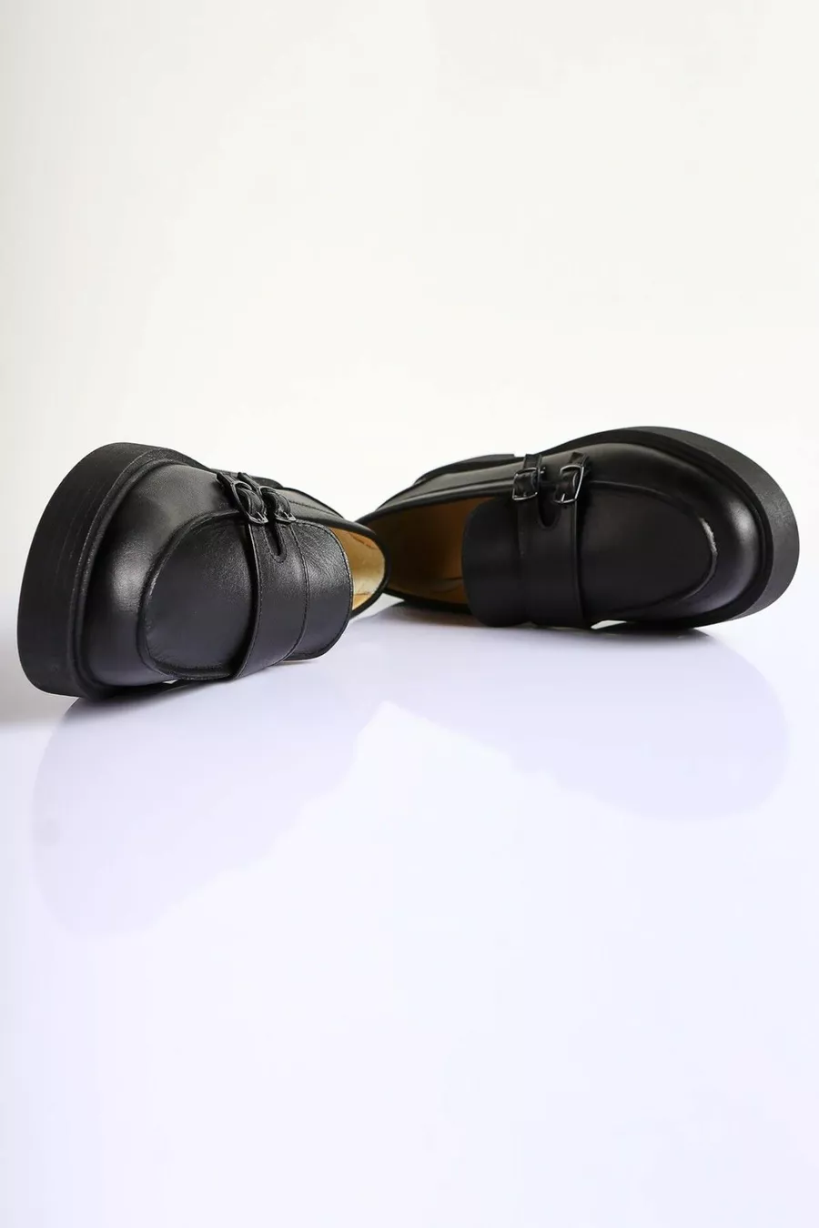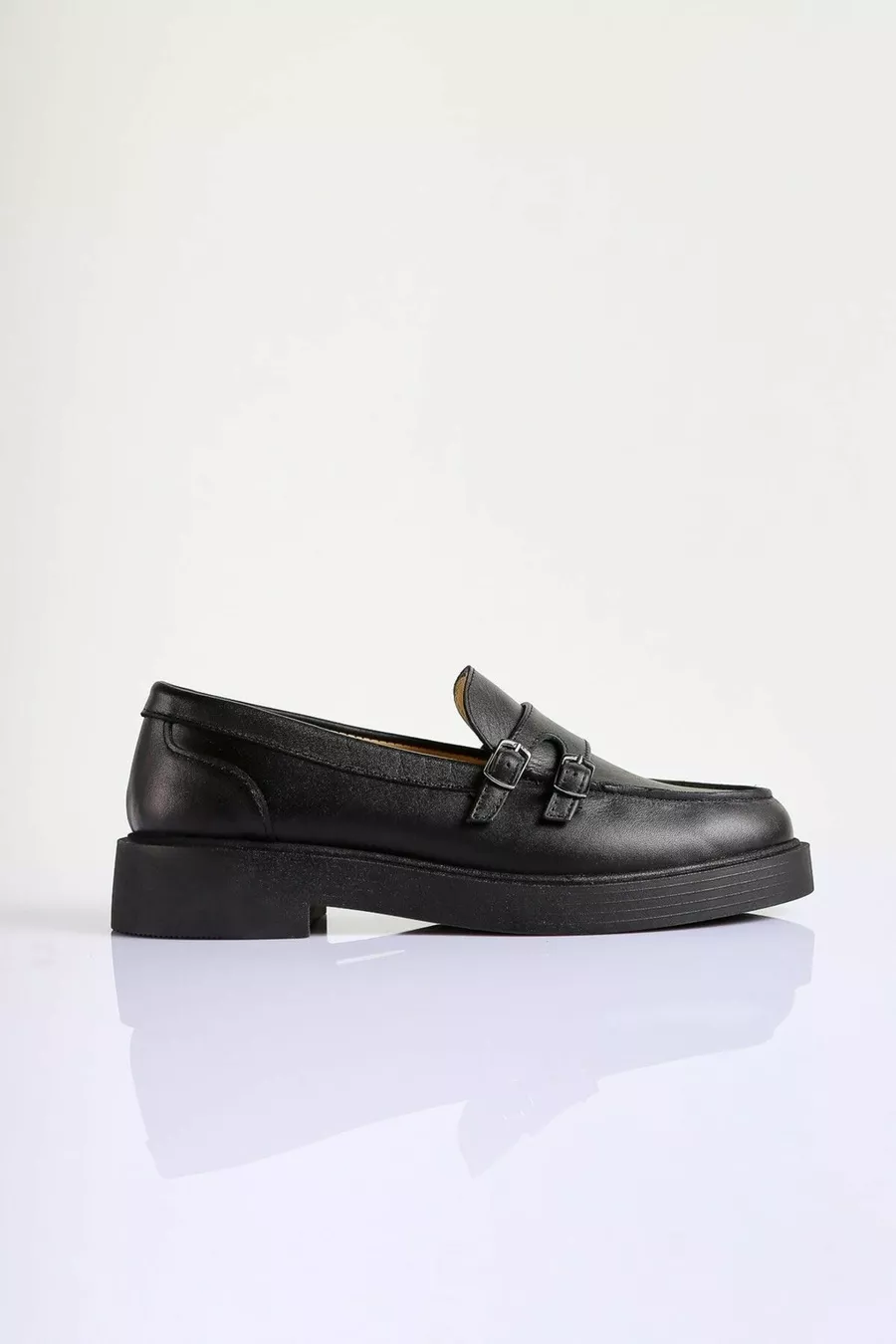 Mocassins à double boucle en cuir véritable noir pour femme