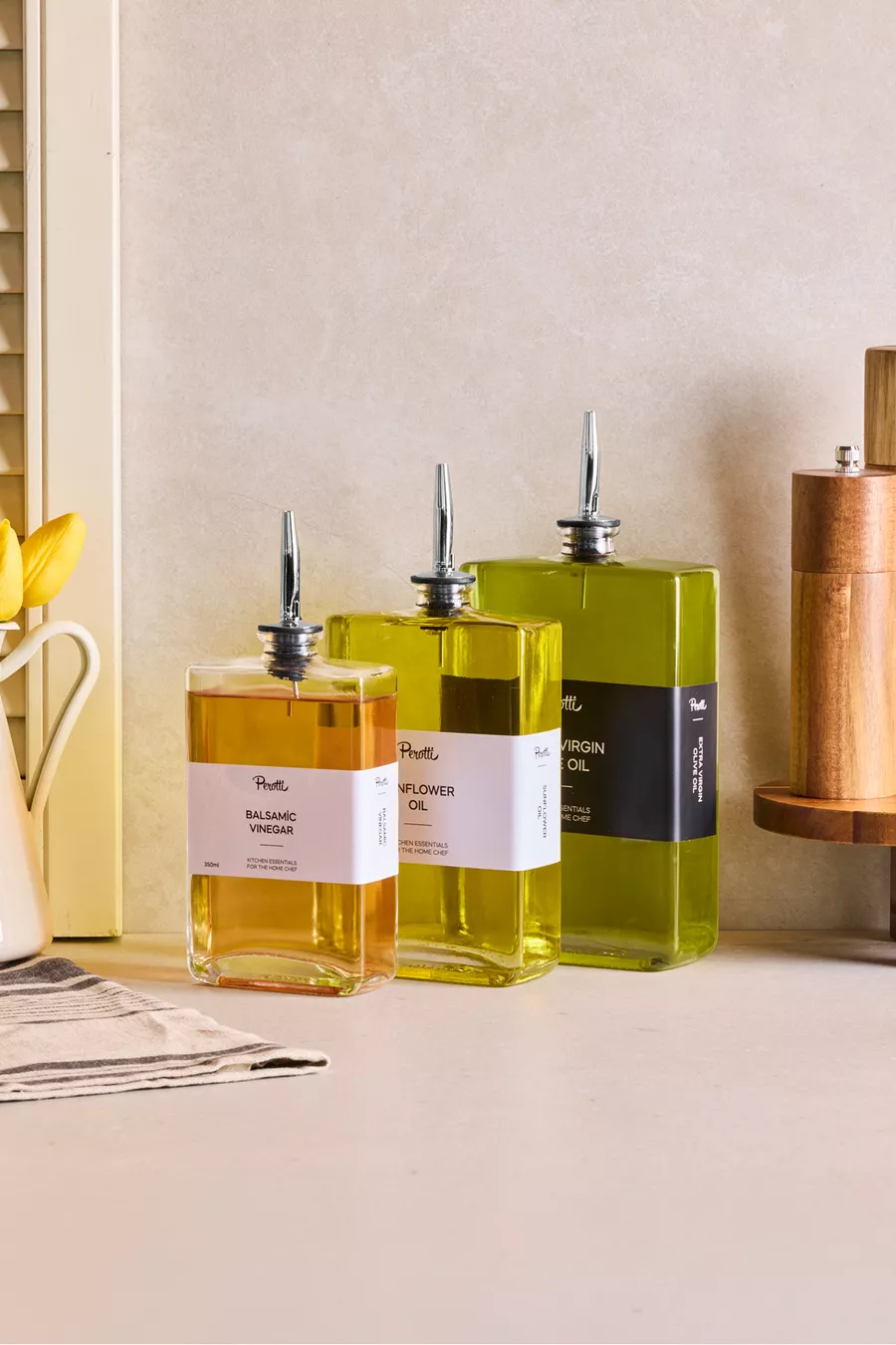 Molivet Set de 3 Huilier, Sauceur et Vinaigrier en Verre avec Bouchon Argenté ml