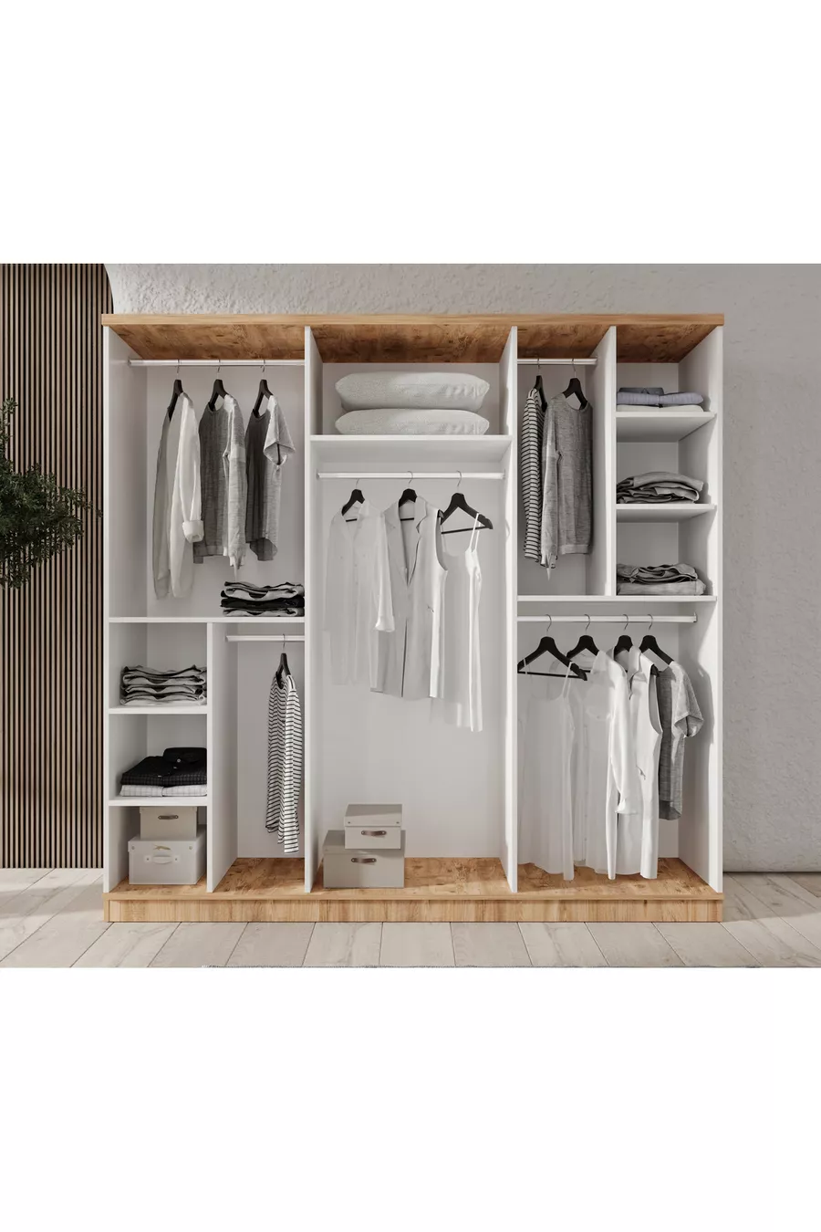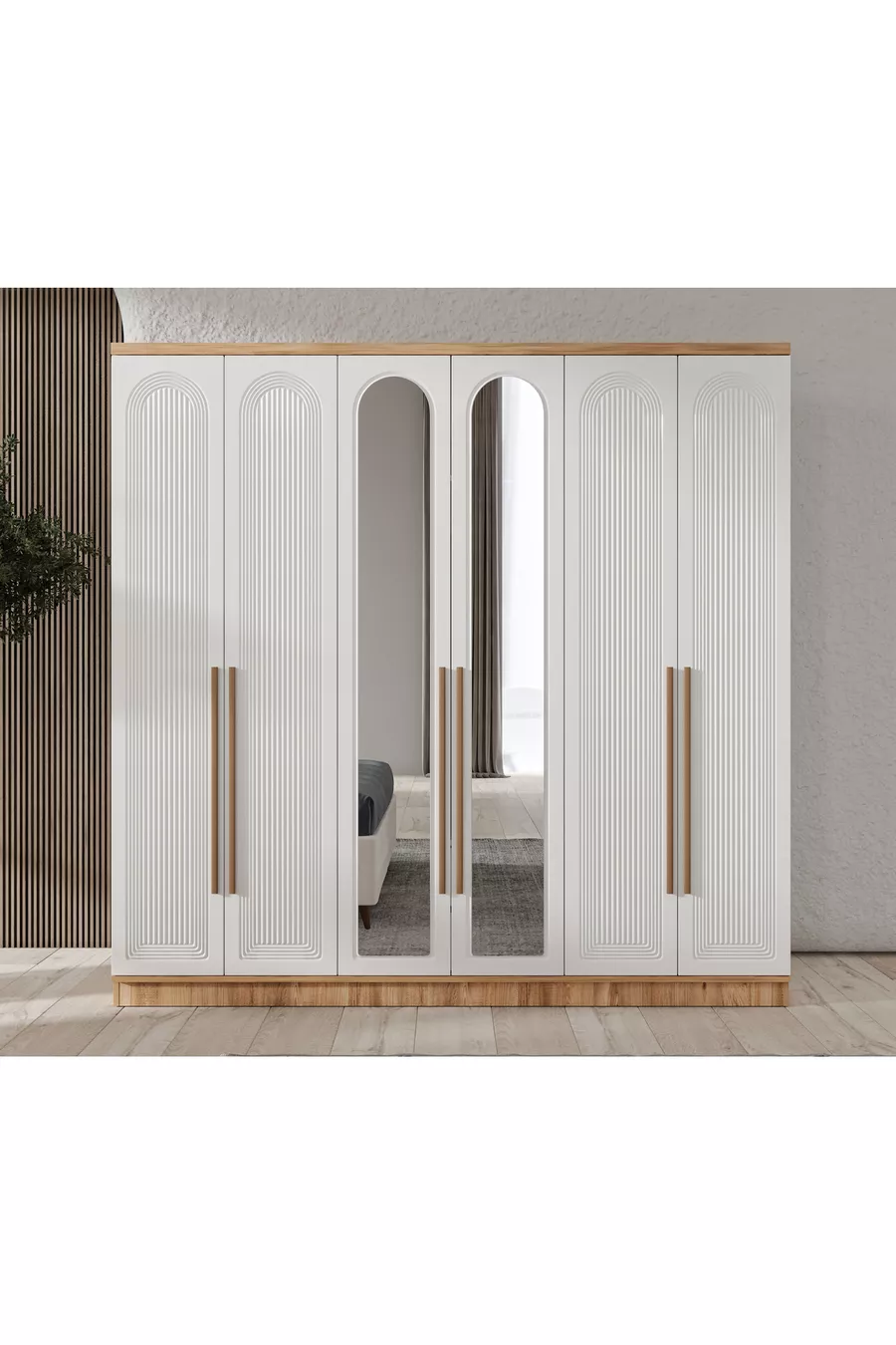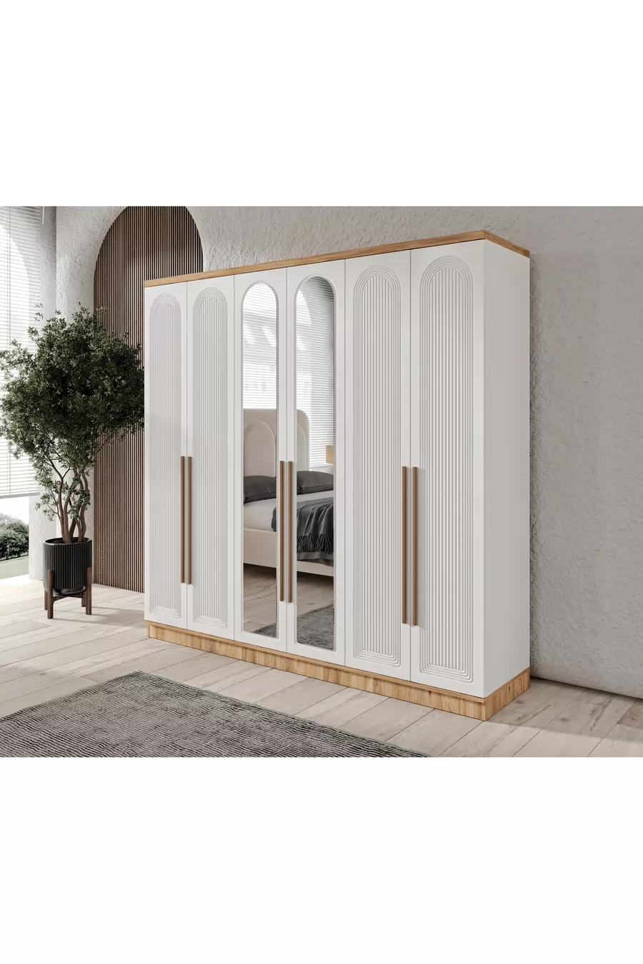 Montage Gratuit - Chambre à Coucher Complète en MDF Rosa avec 6 Portes